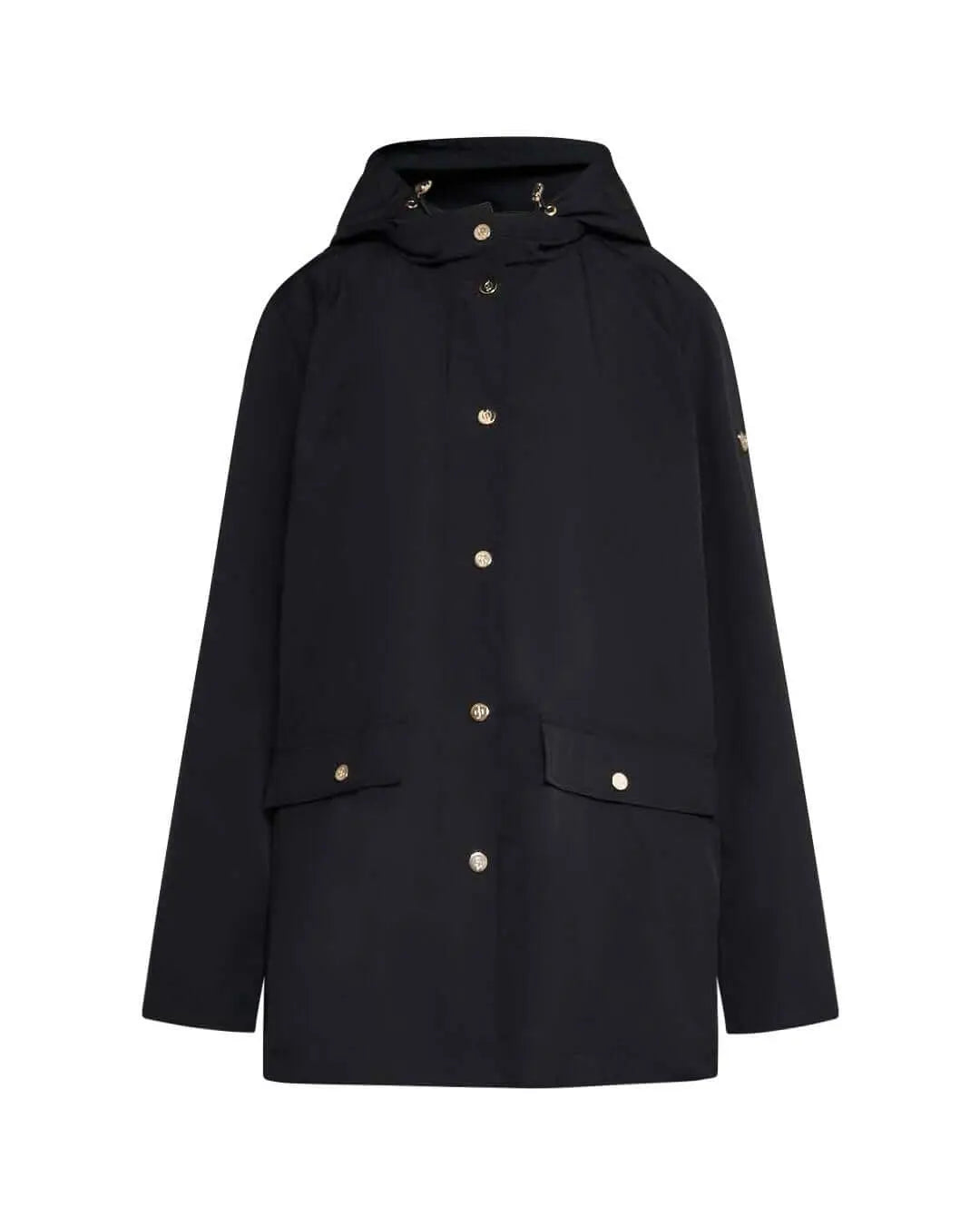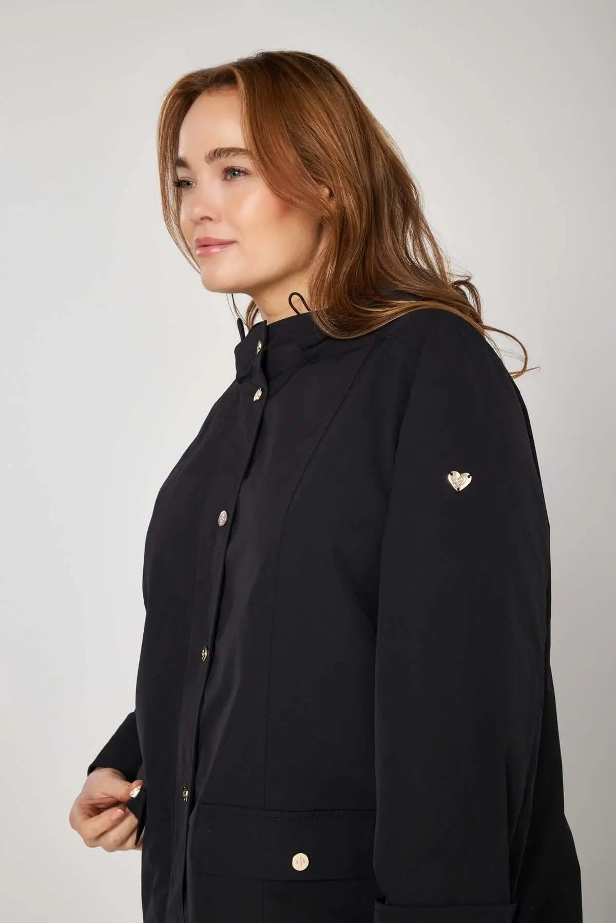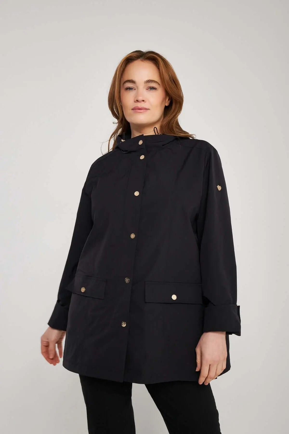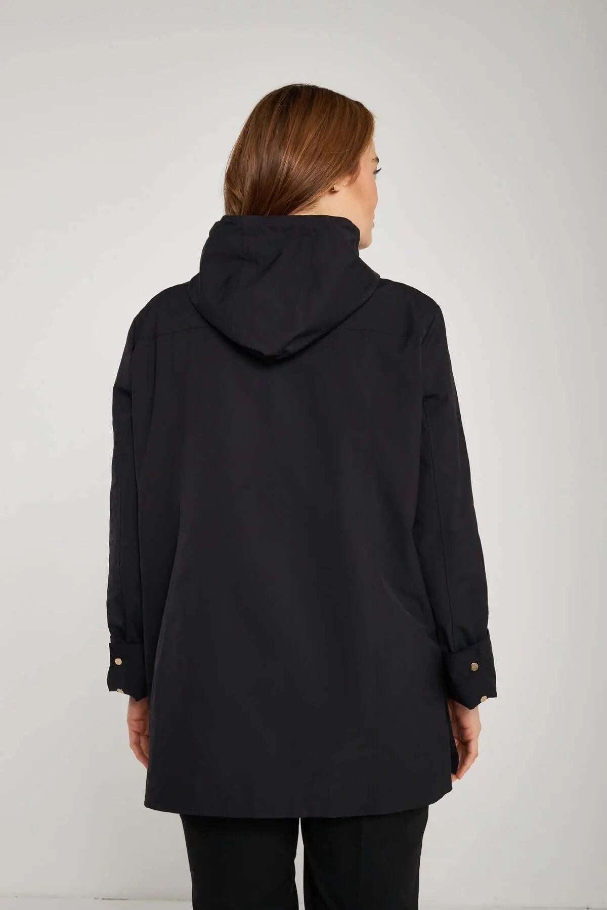 Chaqueta de nailon con capucha y botones a presión. NEGRO