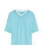 Jersey bicolor de cuello pico en hilo mezcla de viscosa en color liso AGUA