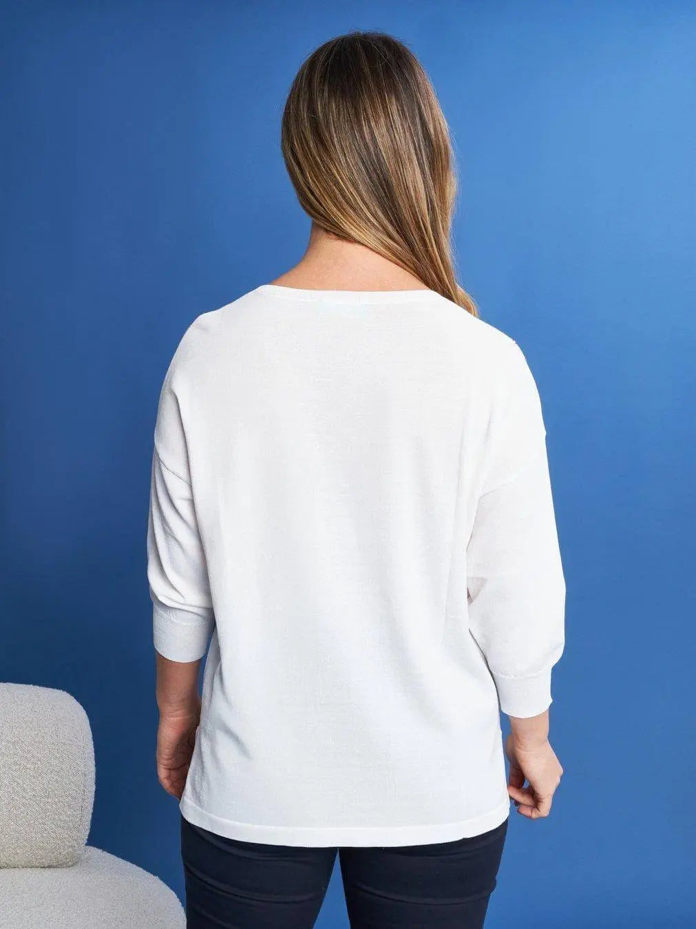 Suéter de cuello barco en hilo mezcla de viscosa con tachuelas BLANCO