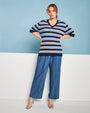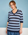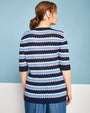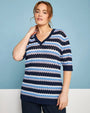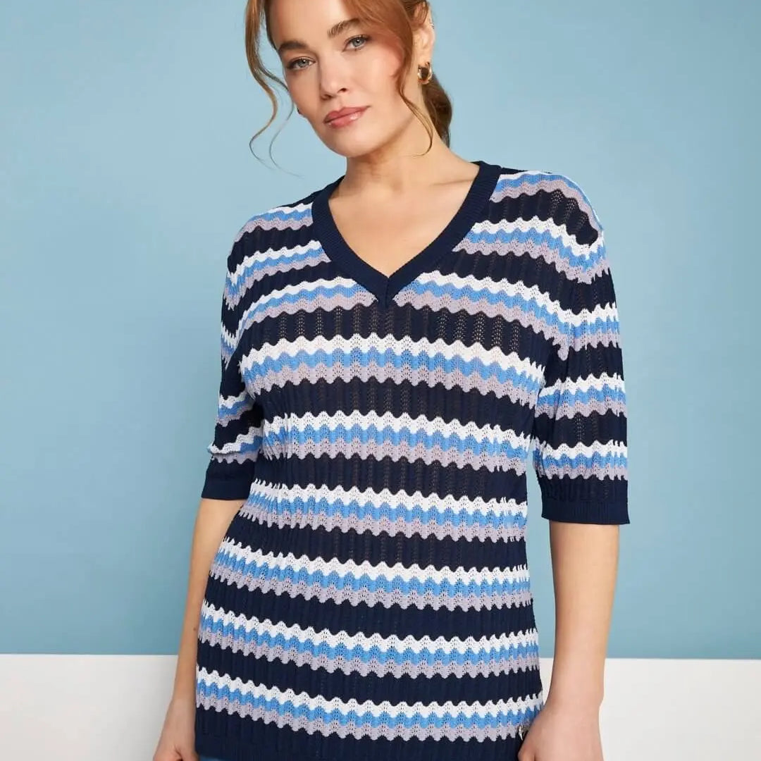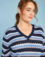 Suéter de cuello en V en hilo de mezcla de viscosa con motivo de chevrones AZUL AZUL MARINO