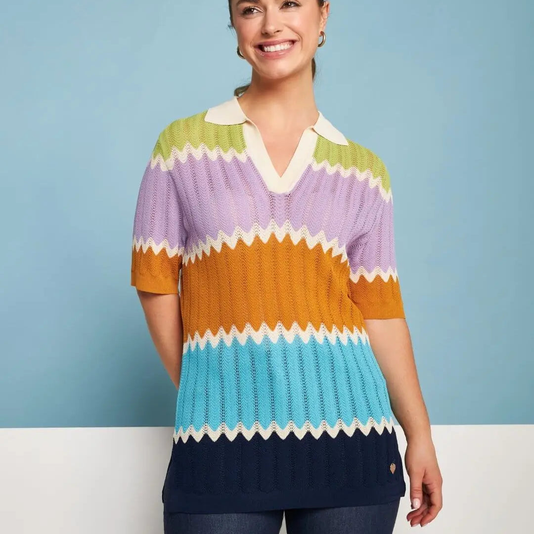 Polo en hilo de mezcla de viscosa con motivo chevron perforado AZUL