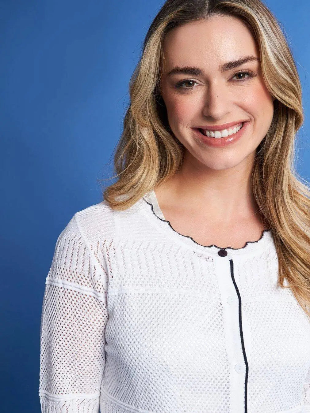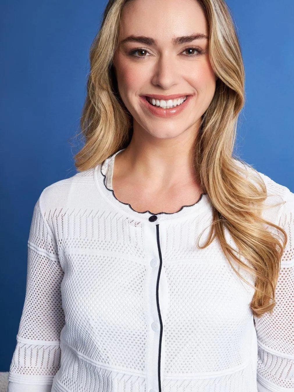 Cárdigan abotonado en punto pointelle de mezcla de viscosa con ribete en contraste BLANCO