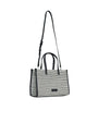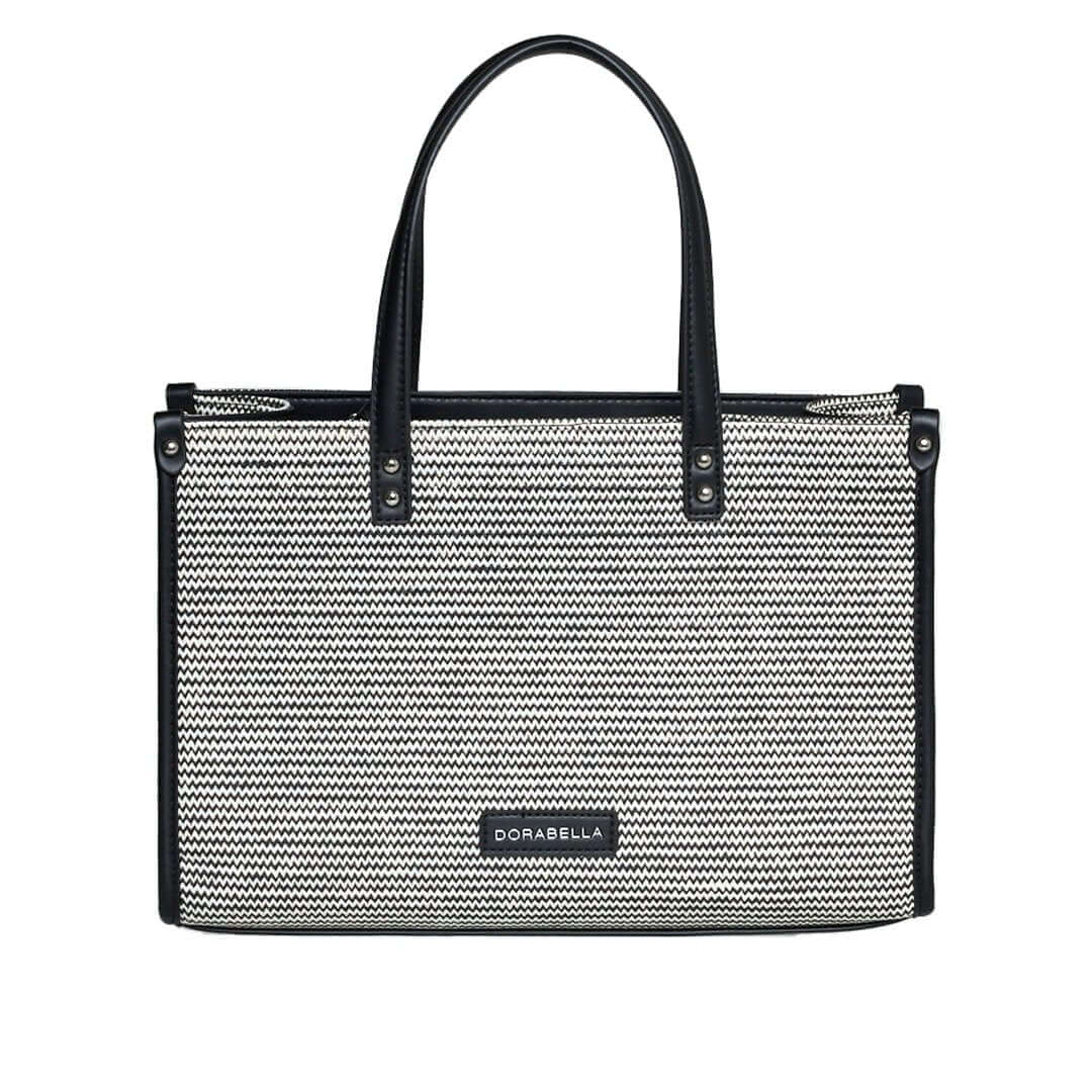 Bolso de rafia con estampado en zigzag y perfiles de piel sintética NEGRO