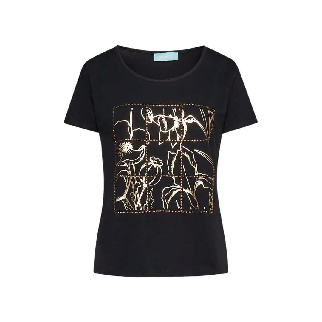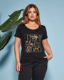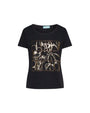Camiseta de jersey de algodón elástico con estampado y pedrería NEGRO