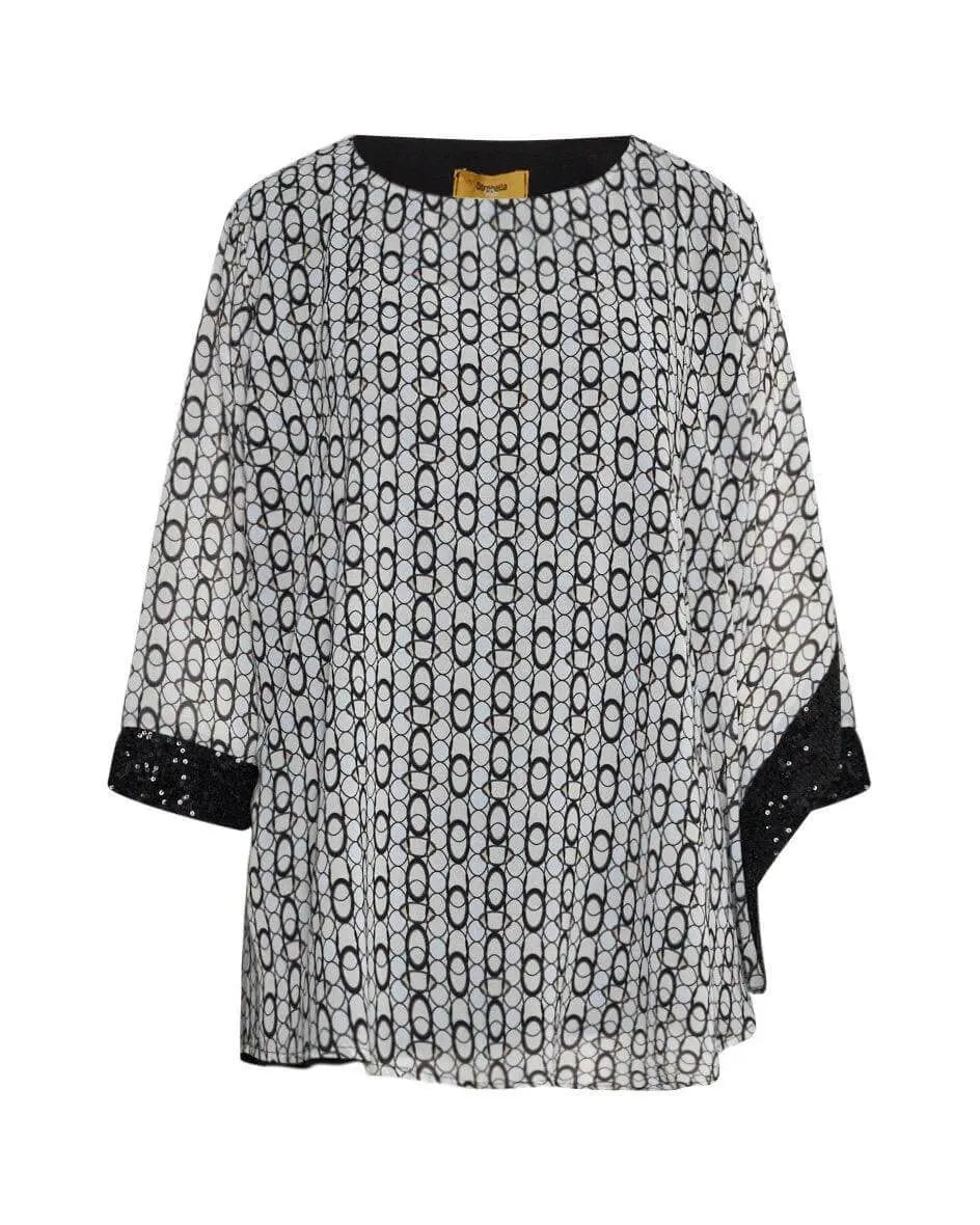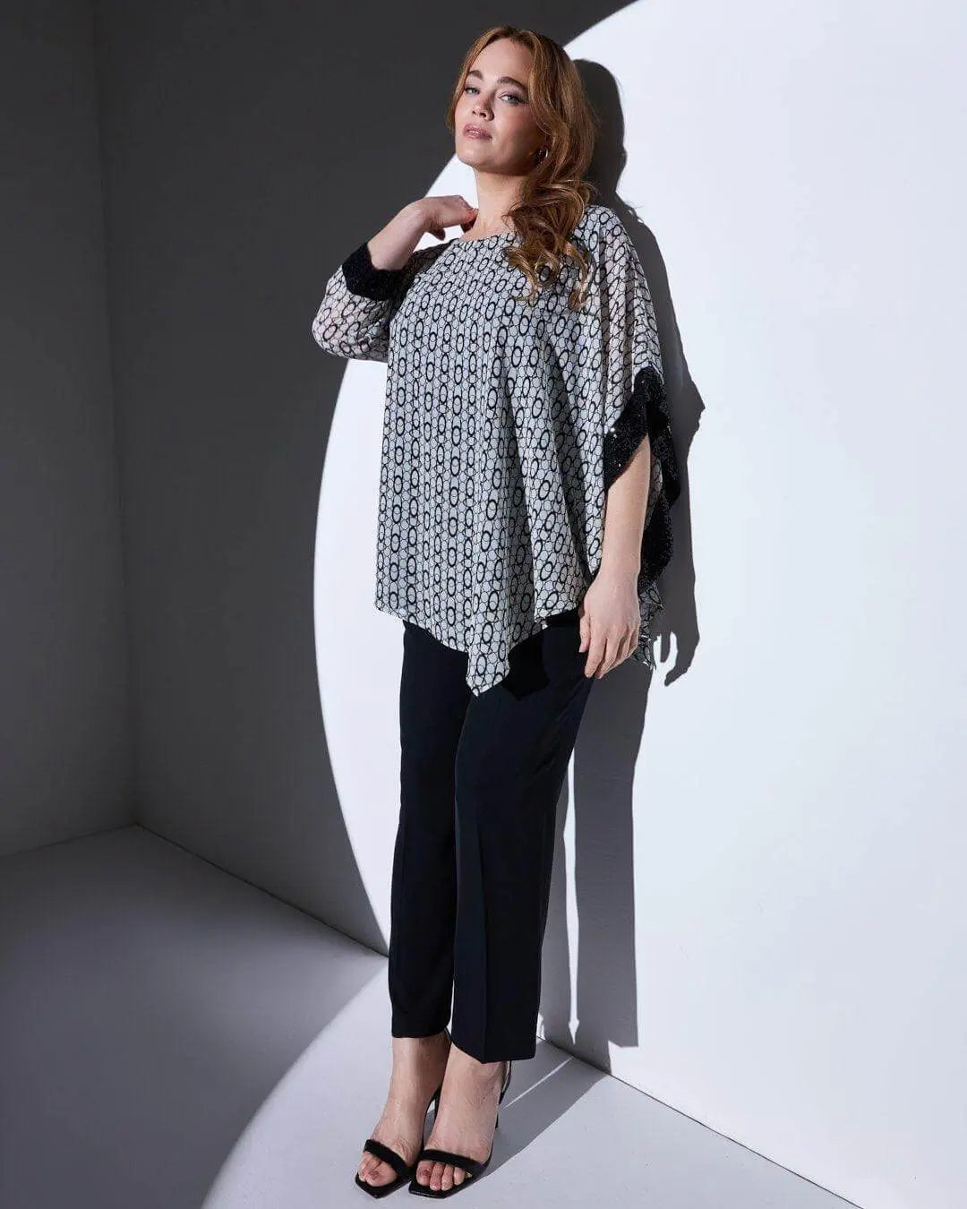 Completo con blusa de georgette con estampado óptico y pantalón fluido NEGRO