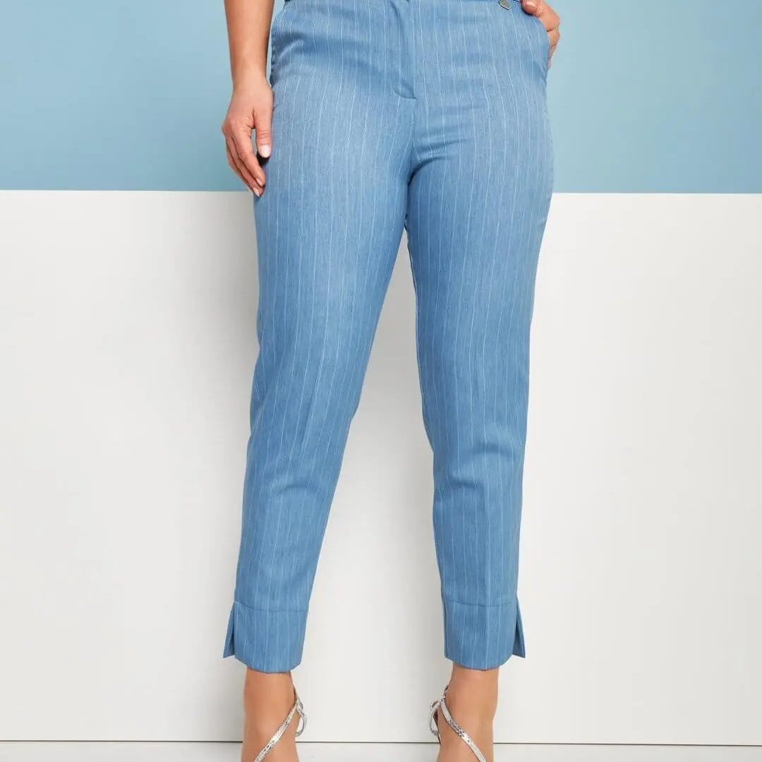 Pantalón pitillo de raya diplomática de chambray DENIM con bolsillo americano