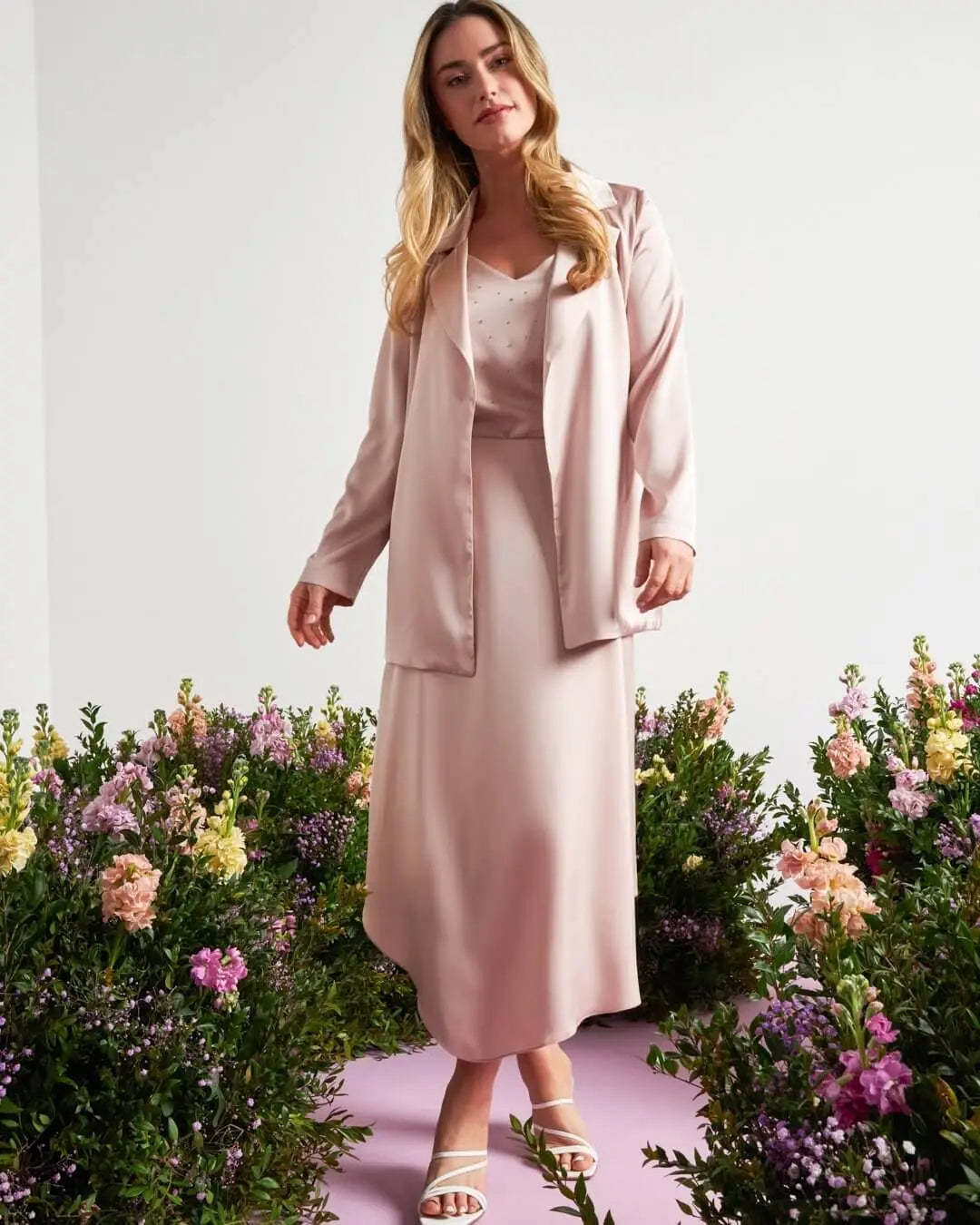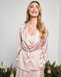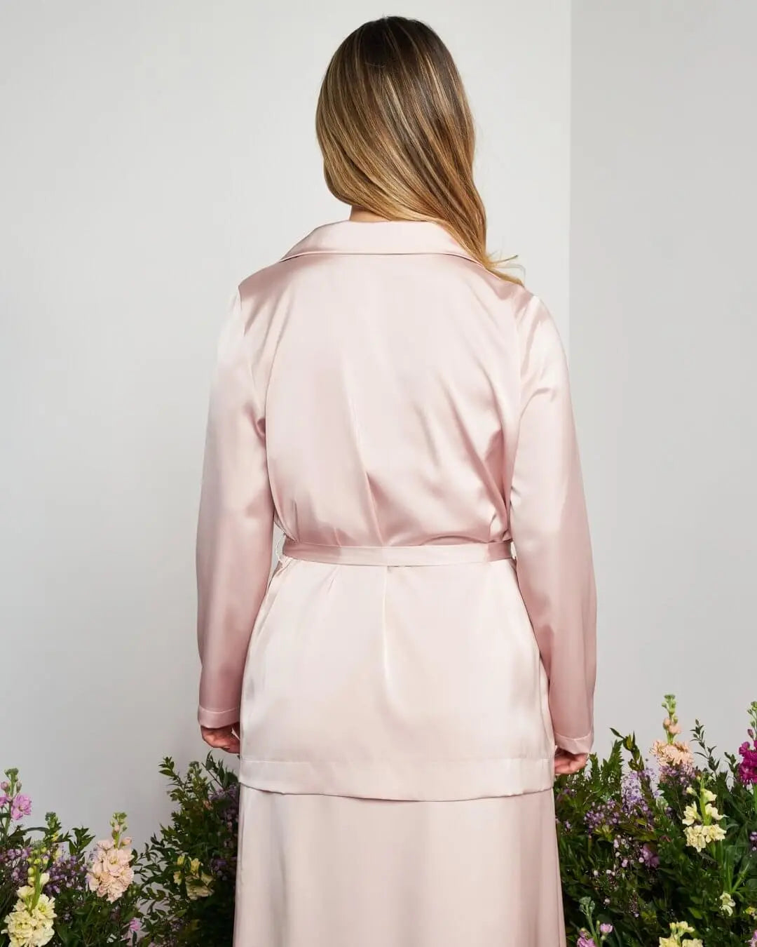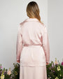 Chaqueta de abotonadura sencilla en satén de color liso con cinturón en la cintura POWDER