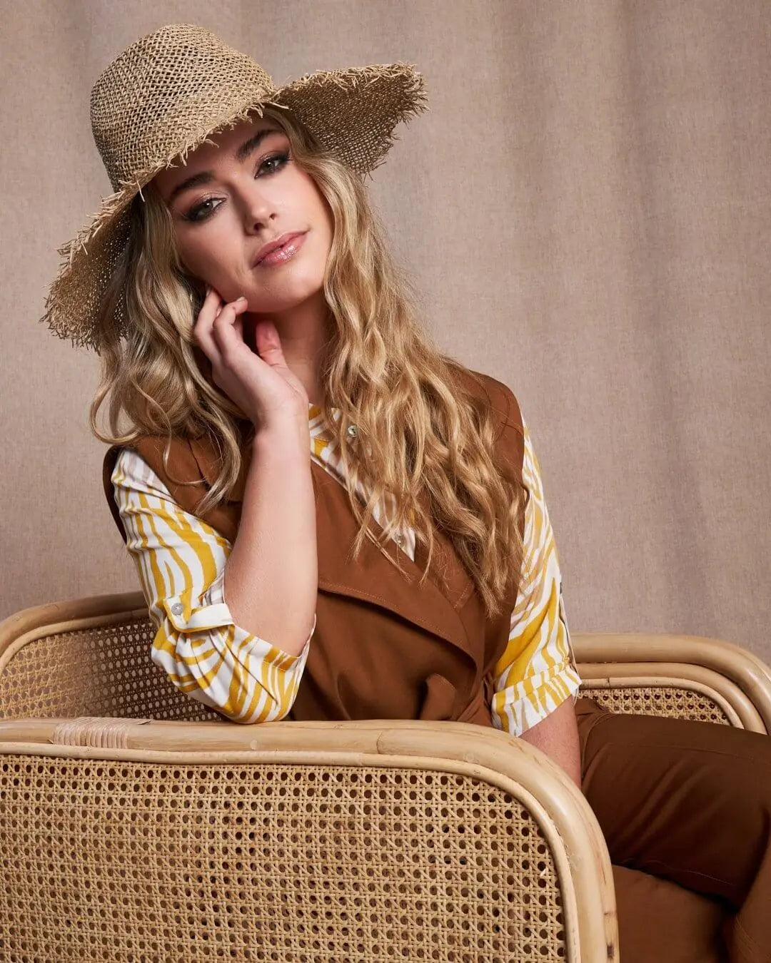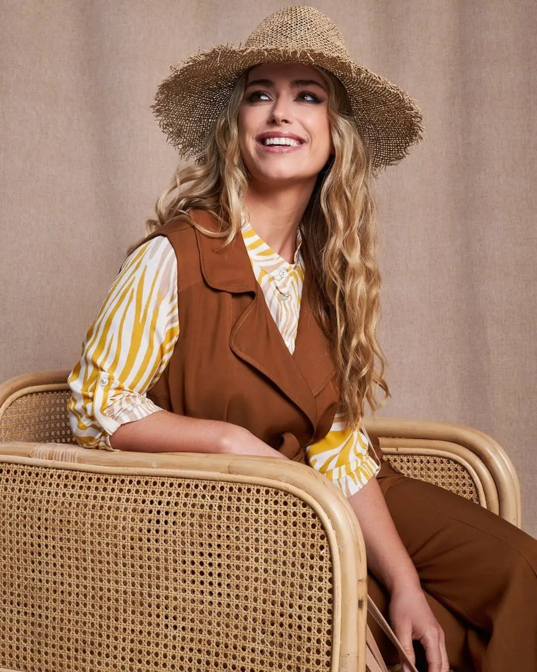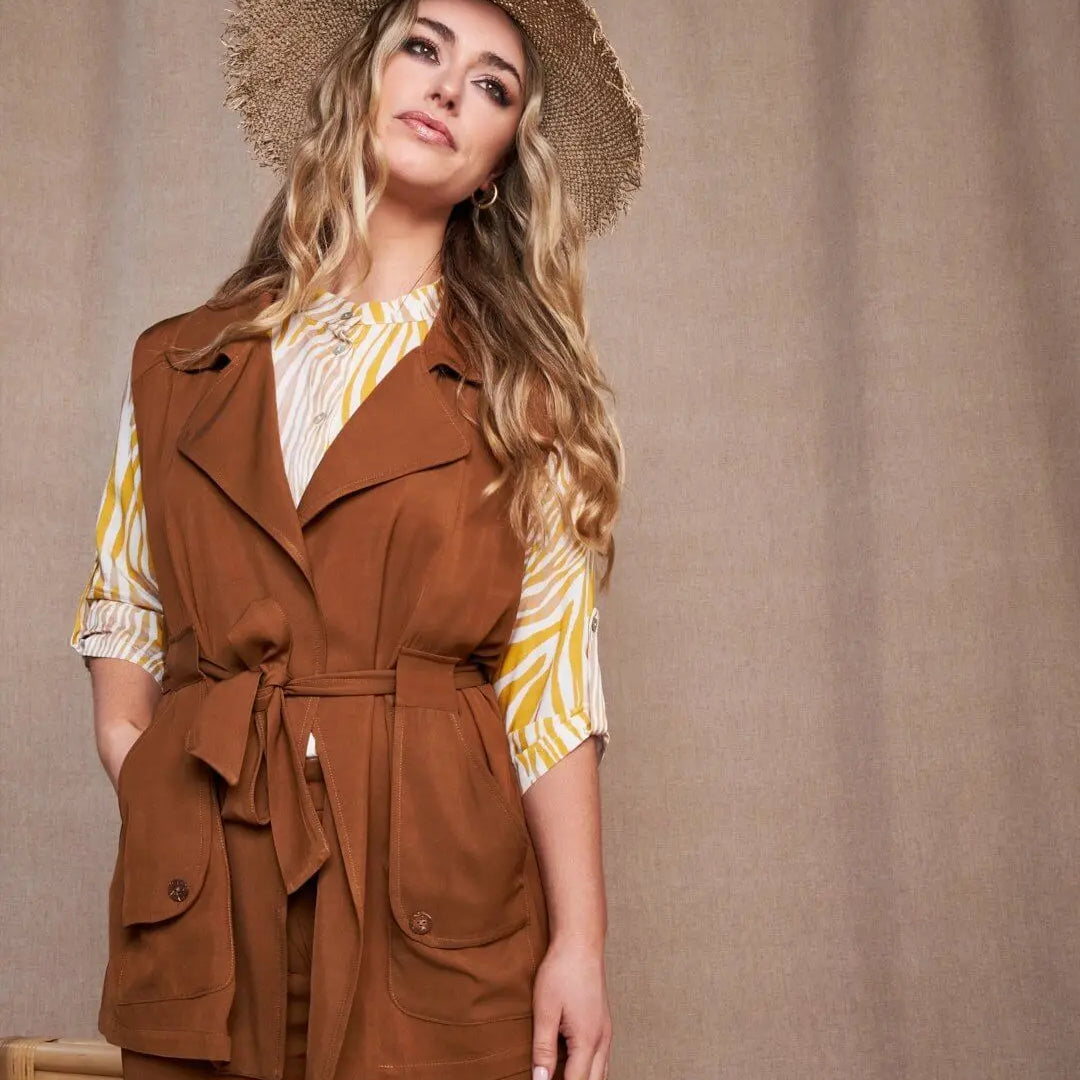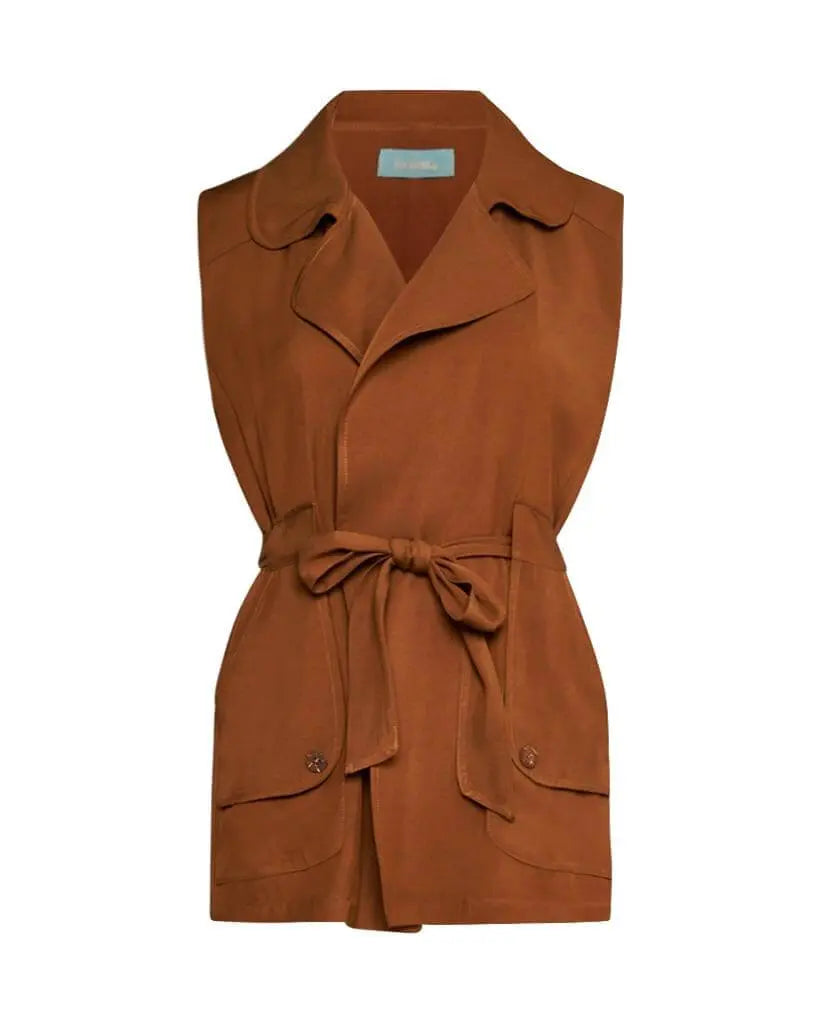 Chaleco de sarga de mezcla de viscosa con cuello de solapa y cinturón MORO