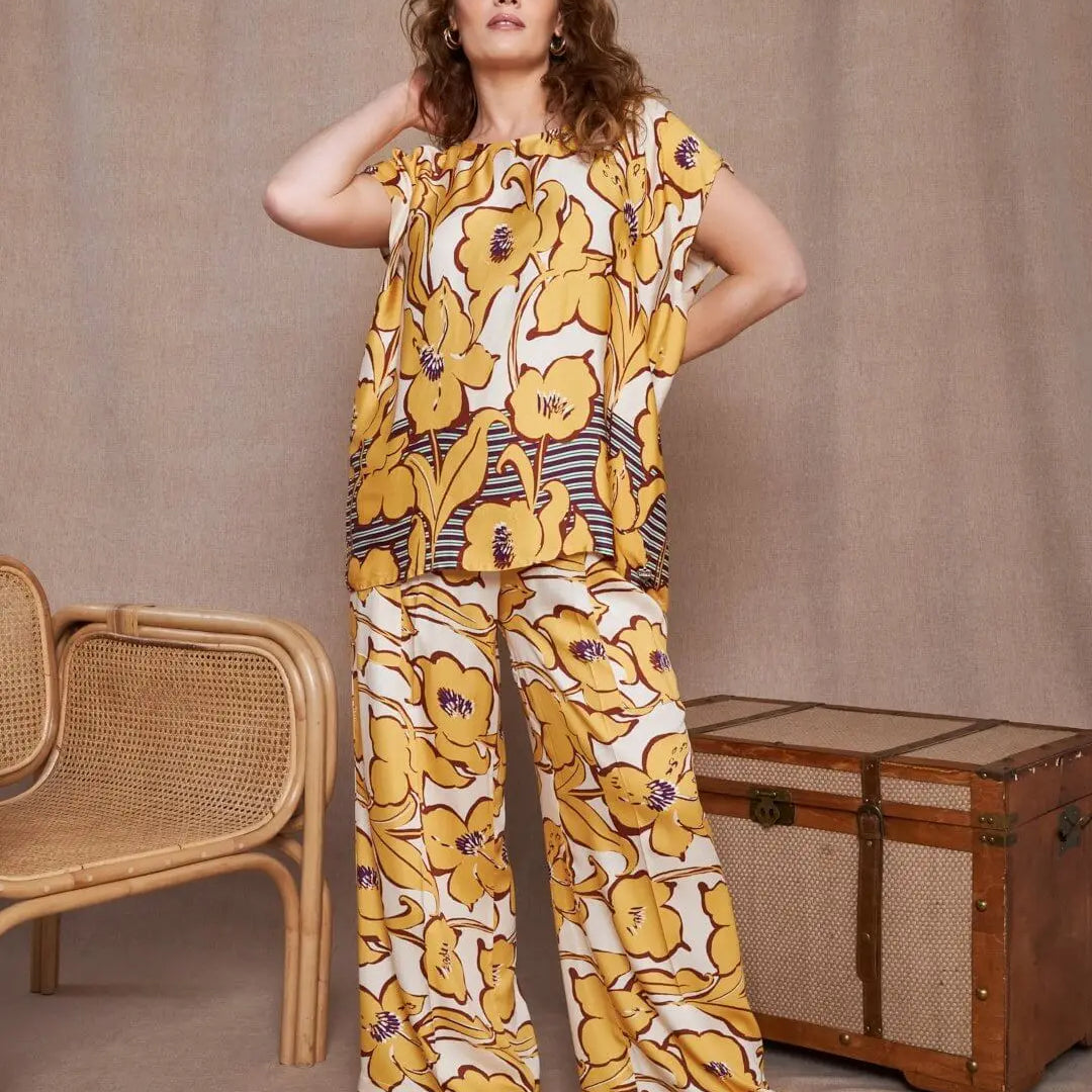 Pantalón ancho de viscosa brillante con estampado floral OCRA