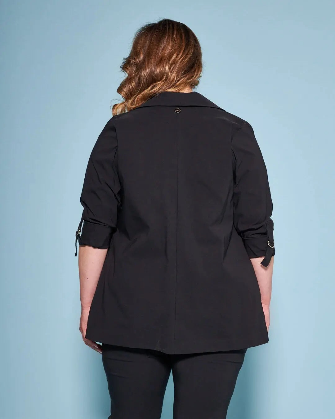 Abrigo de gabardina de mezcla de viscosa elástica con cuello de solapa NEGRO