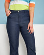 Vaqueros acampanados de cinco bolsillos en denim de algodón jaspeado con bordado del logotipo DENIM