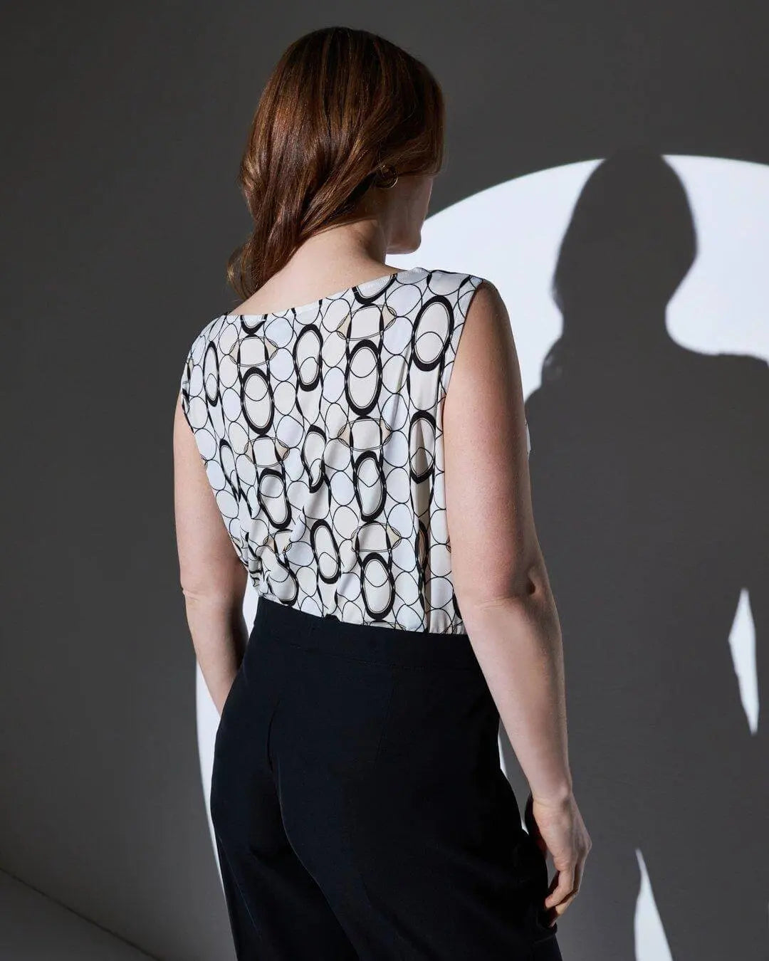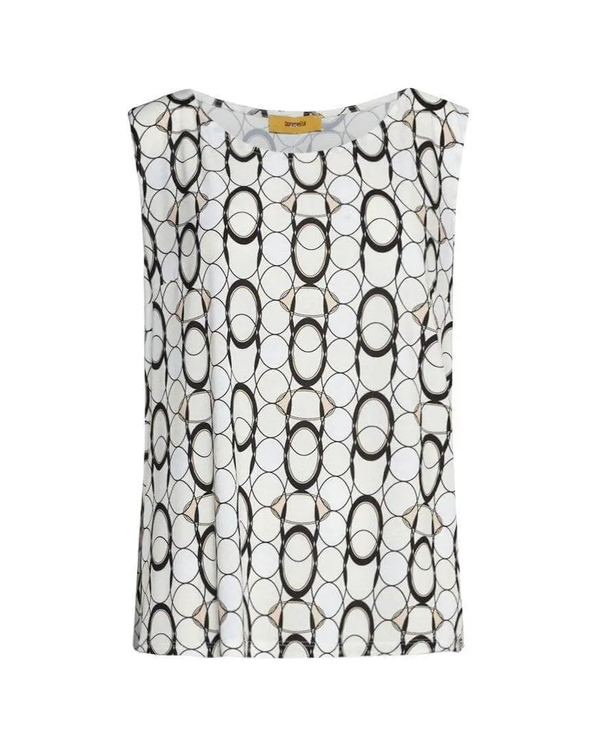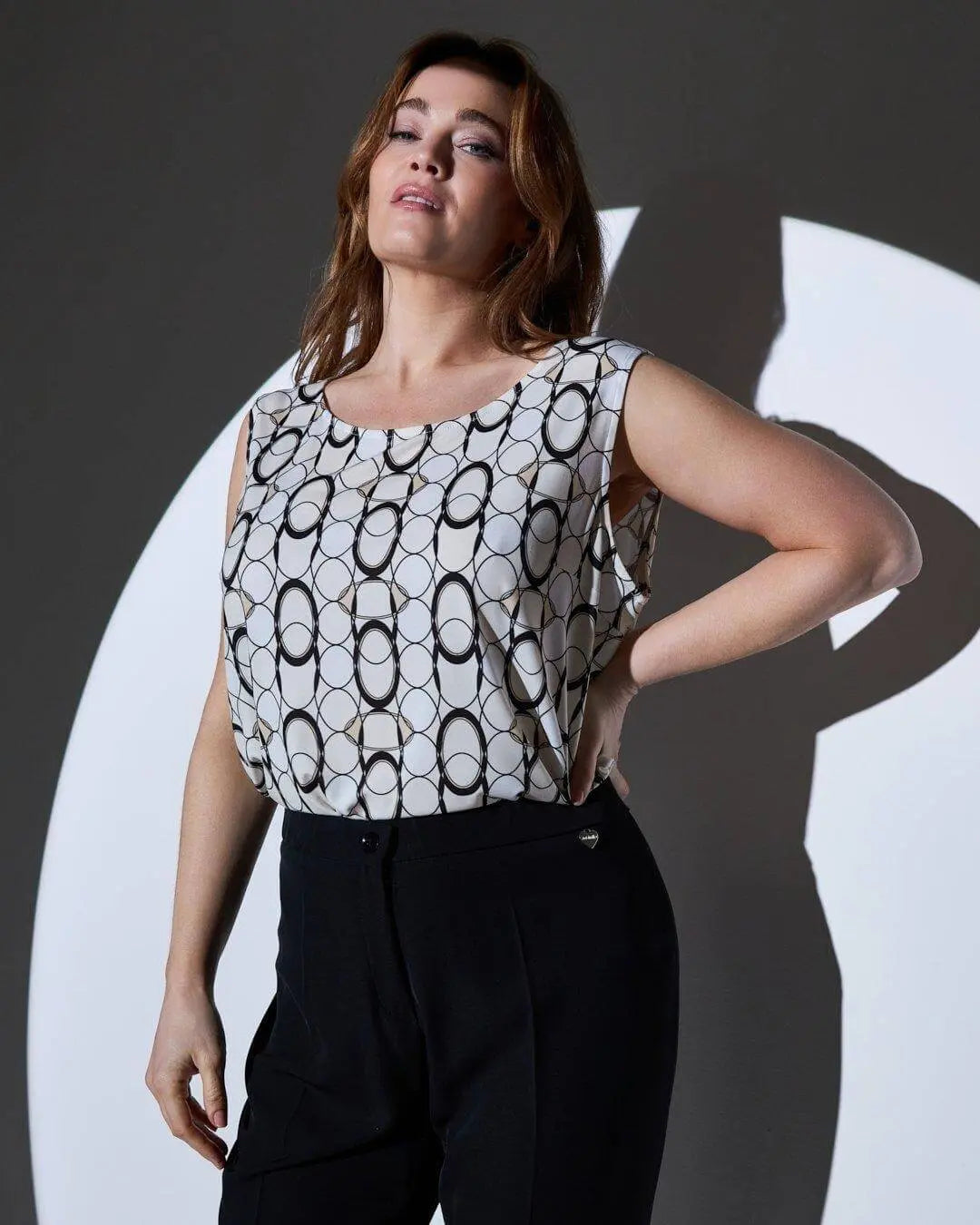 Camiseta de tirantes de satén con cuello redondo y estampado óptico CREMA