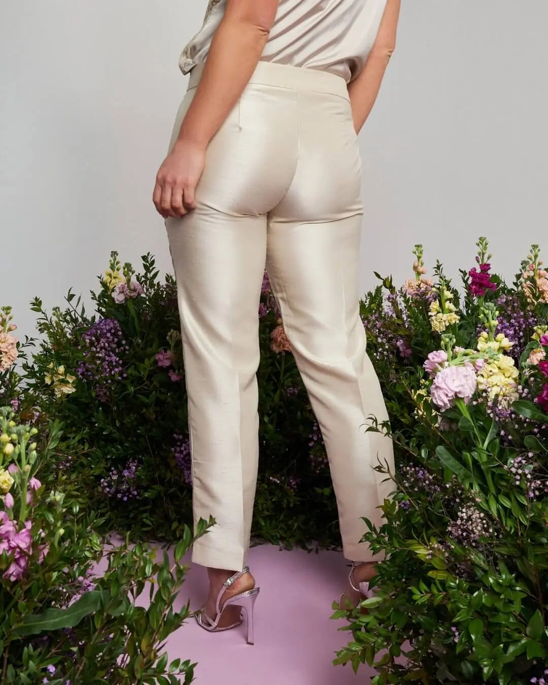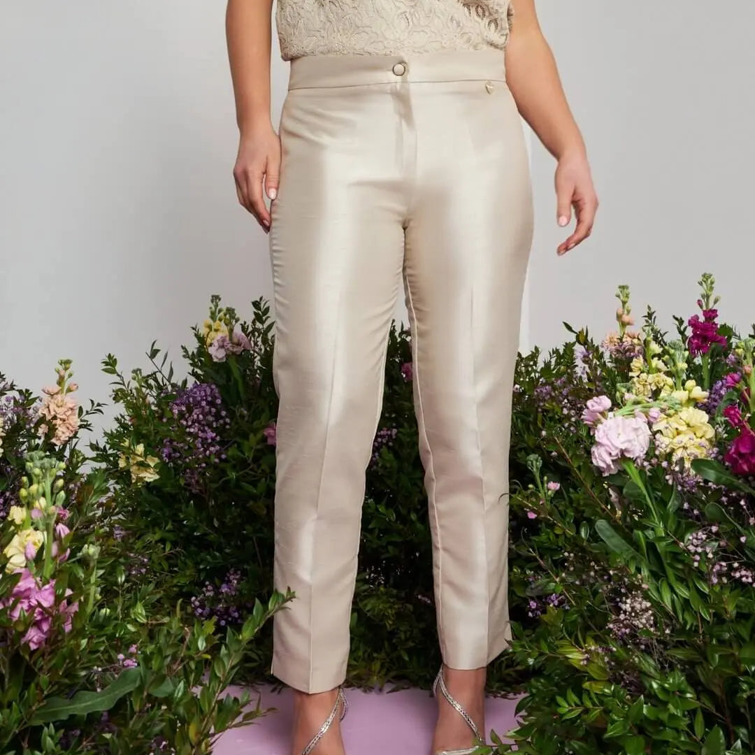 Pantalón pitillo de shantung con botón forrado CHAMPAGNE