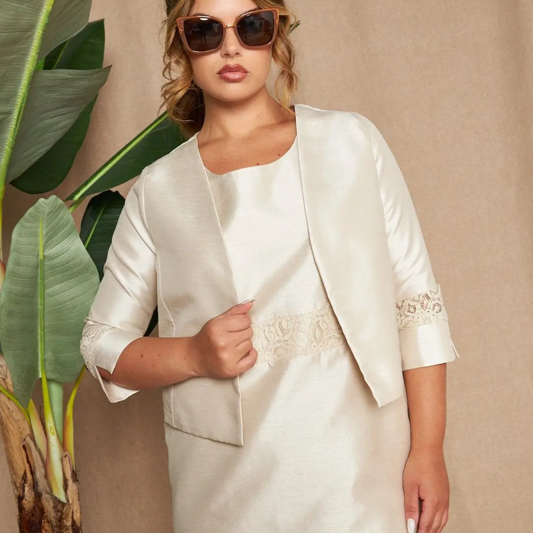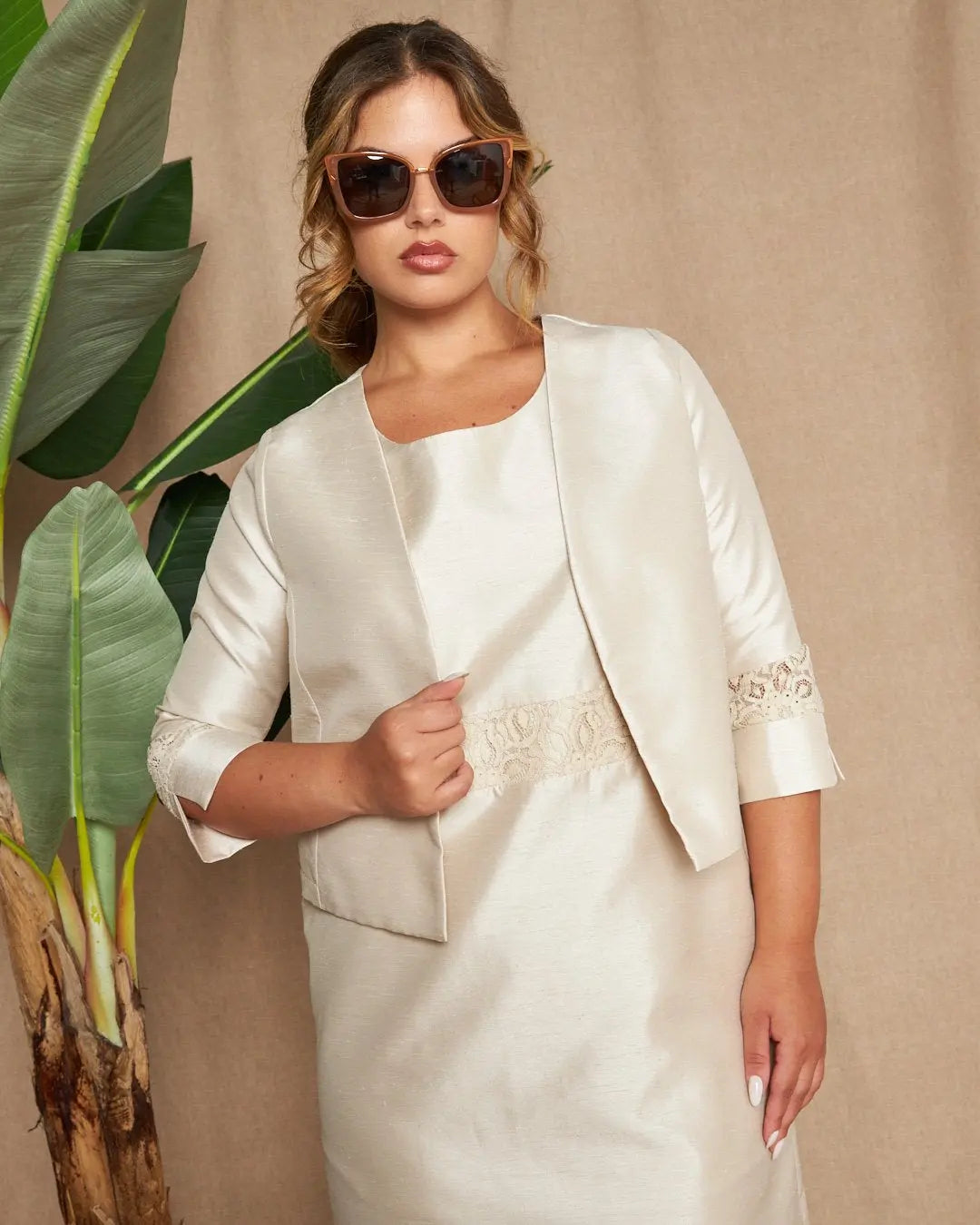 Bolero de shantung con inserciones de encaje en las mangas CHAMPAGNE