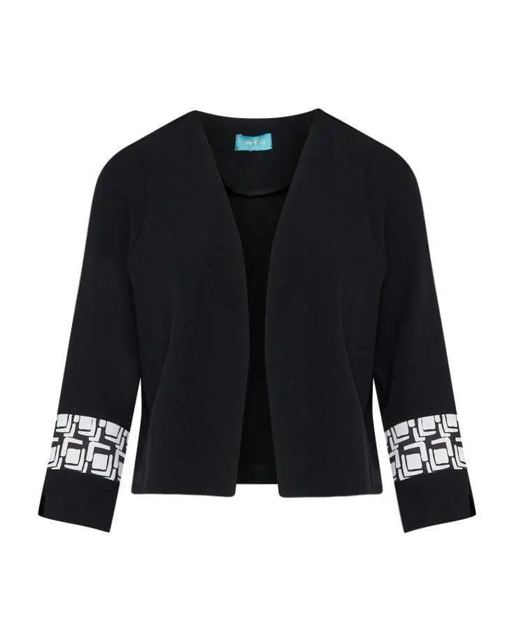 Chaqueta bolero de cady lisa con inserciones de patrón óptico NEGRO