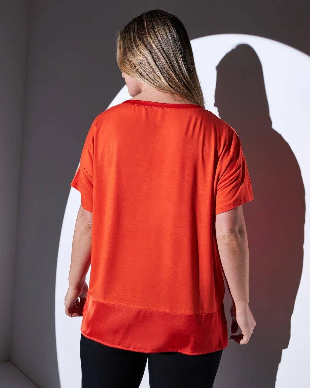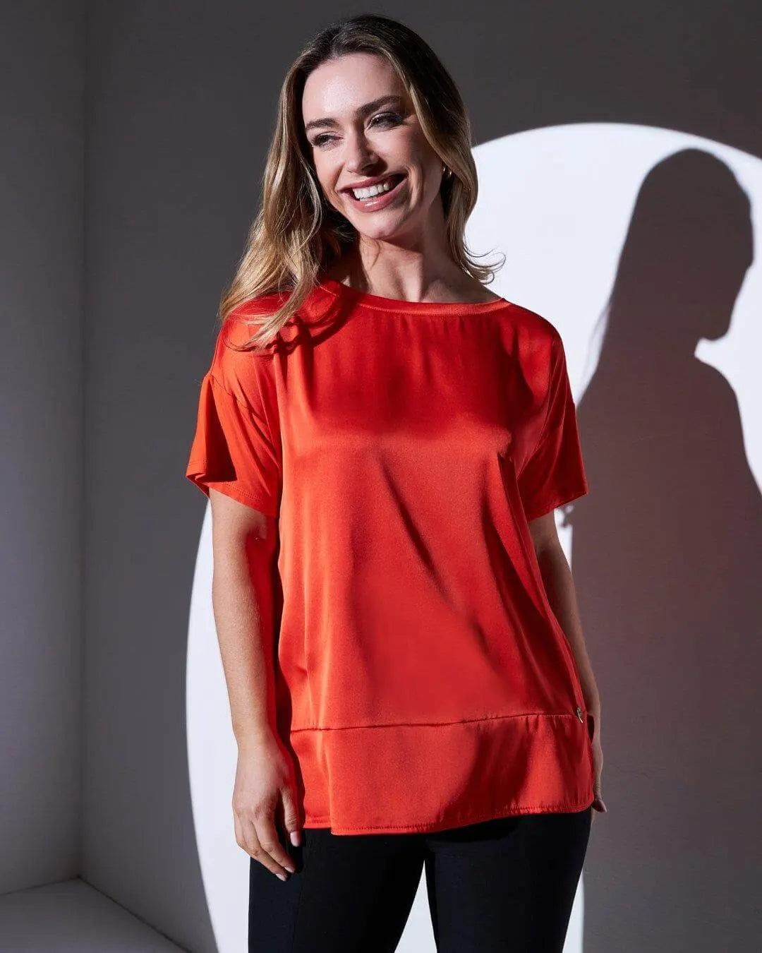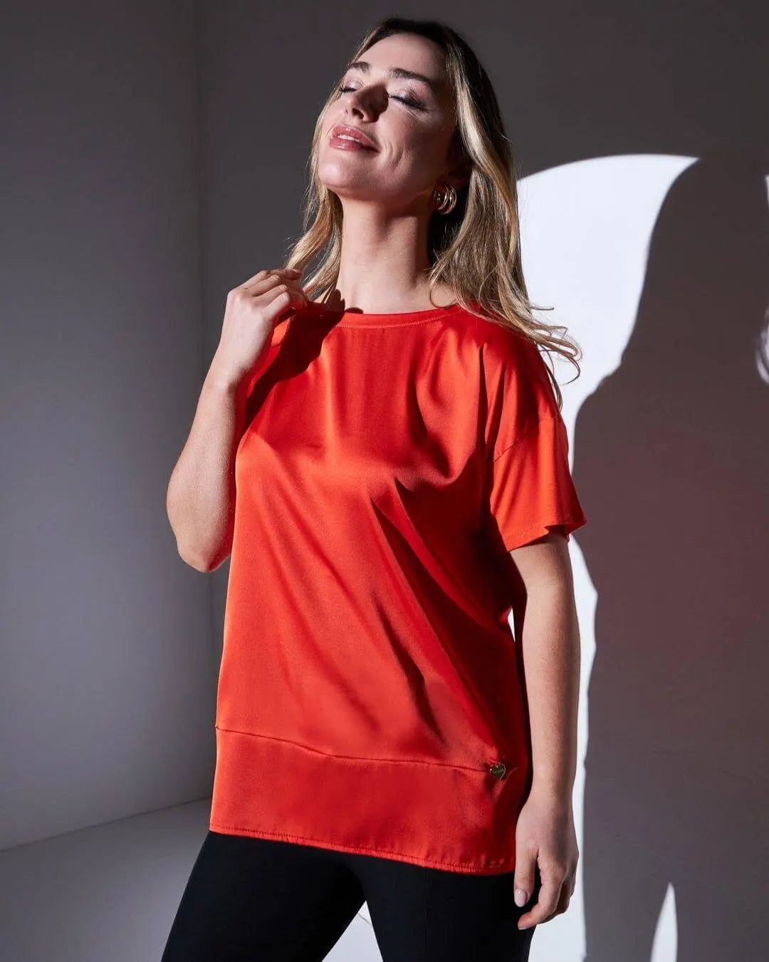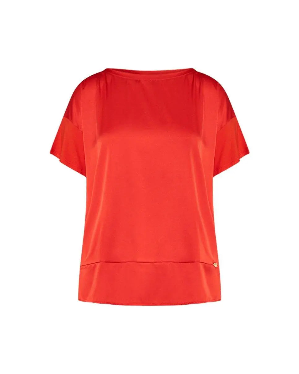 Camiseta de satén elástico con cuello barco y espalda de jersey PAPAVERO