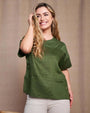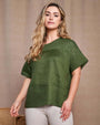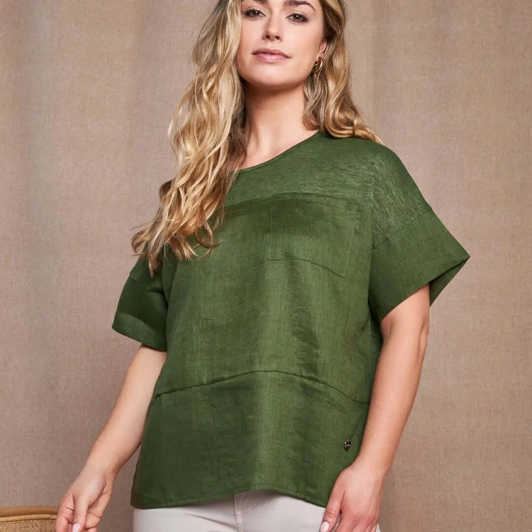 Camiseta de cuello redondo en jersey de lino y jaspeado con bolsillo en el pecho MILITAR