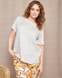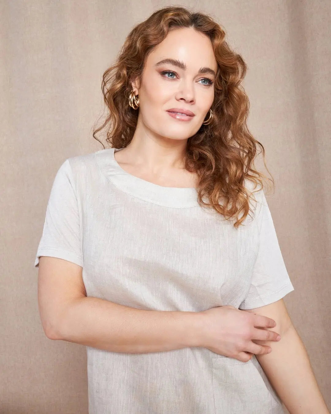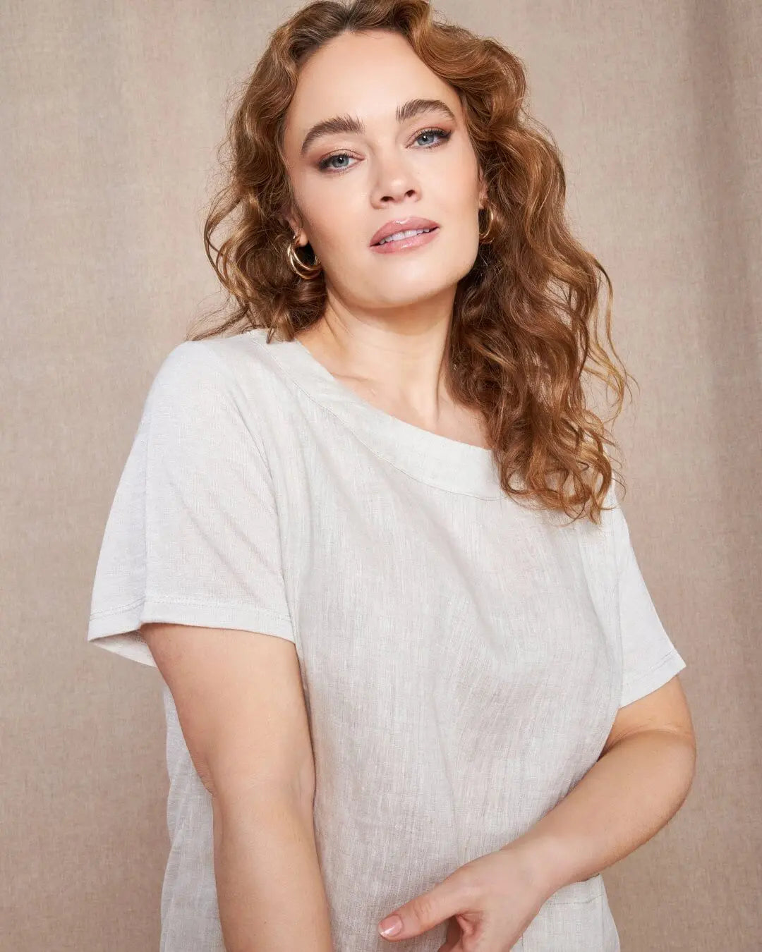 Camiseta de jersey combinado de lino y jaspeado con escote barco y bolsillo de parche NATURAL