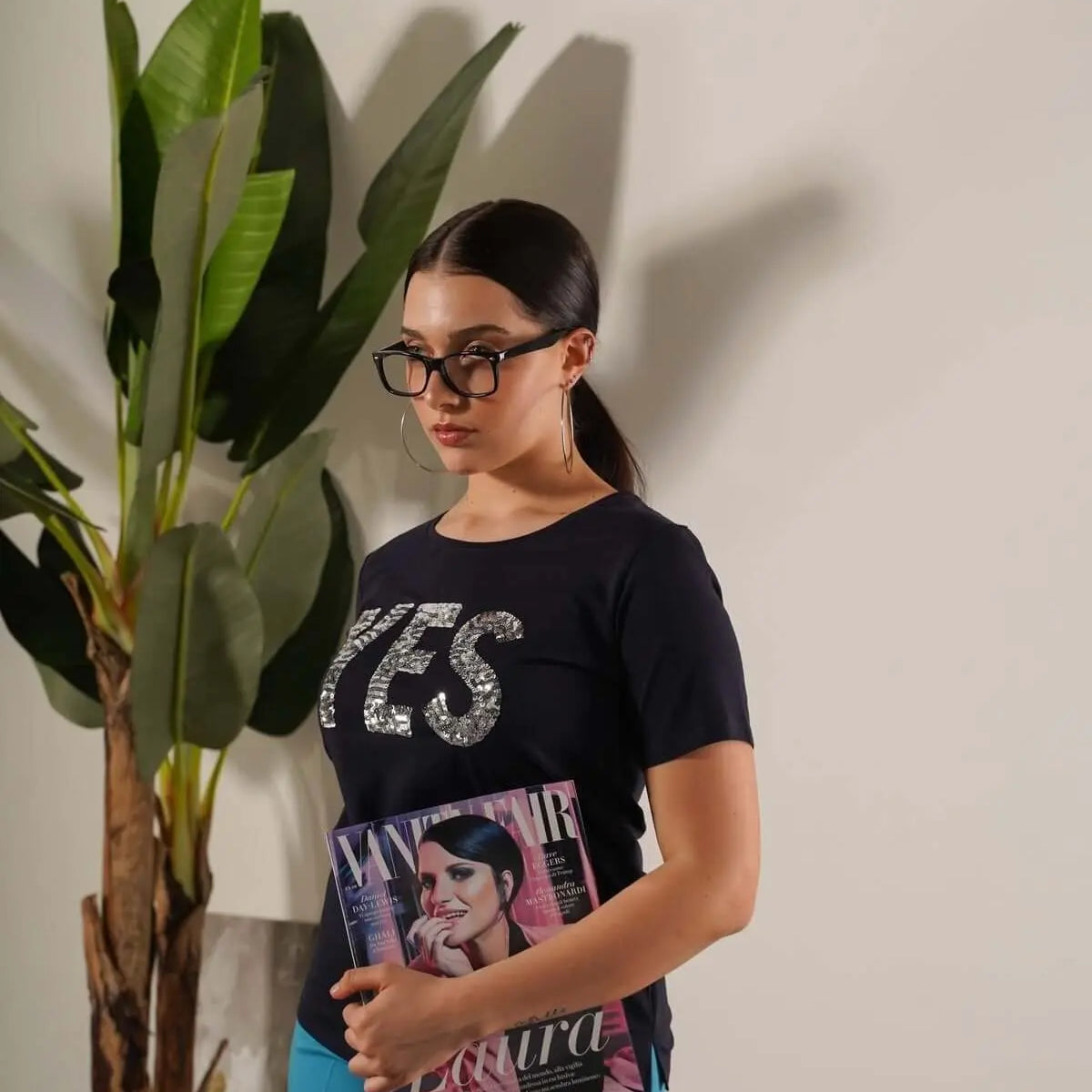 La modelo mide 1,75 m y usa talla M.