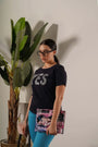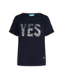 Camiseta de cuello redondo de jersey de algodón elástico con eslogan de lentejuelas AZUL