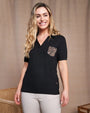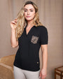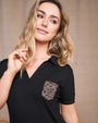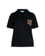 Polo de jersey de viscosa elástica con bolsillo con tachuelas y estampado animalier NEGRO