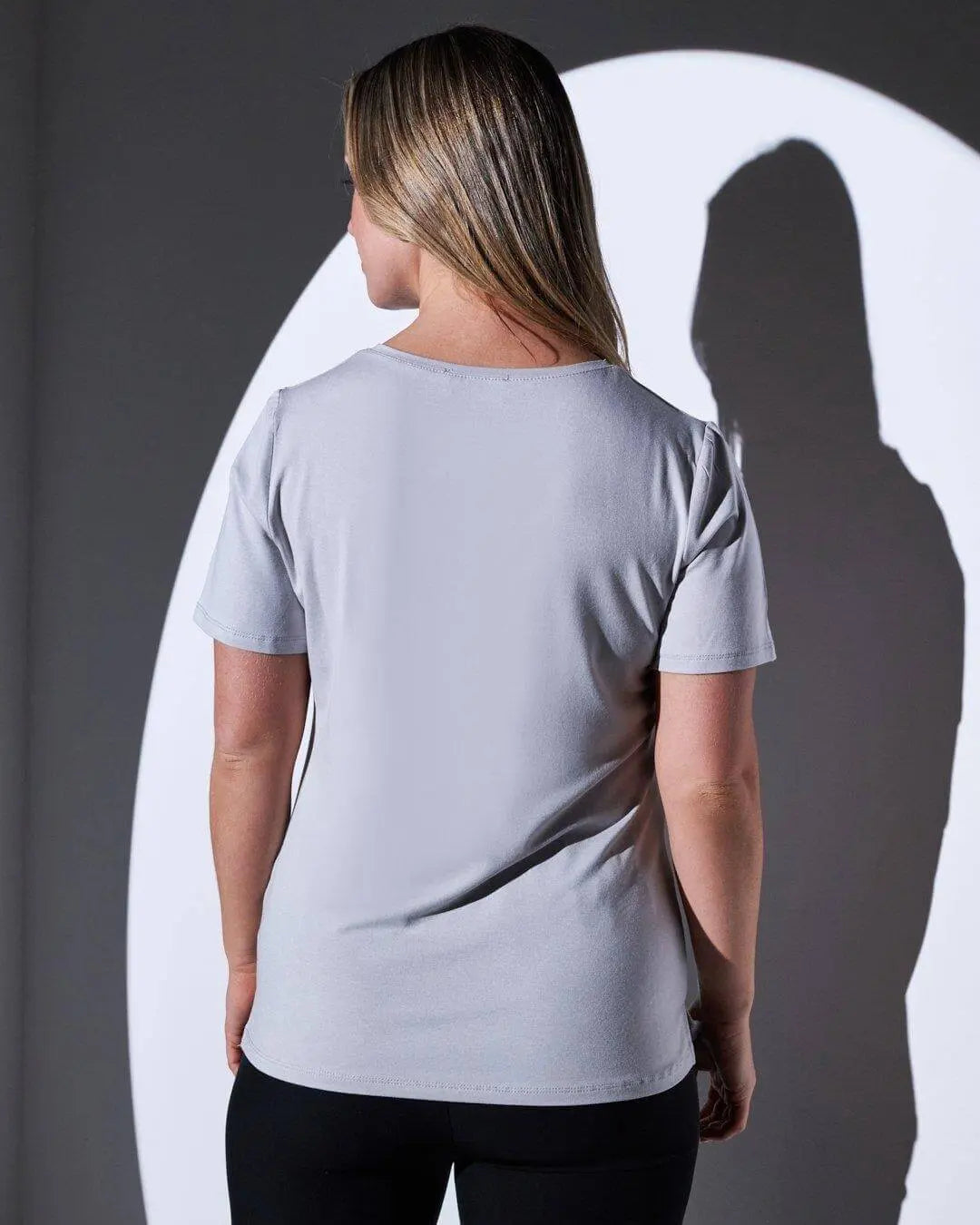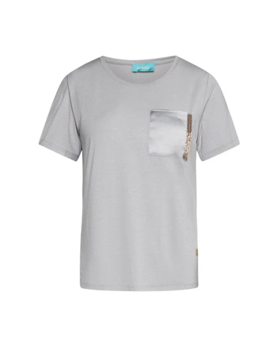 Camiseta de cuello redondo en jersey de viscosa elástica con bolsillo de satén con microcadenas GRIS