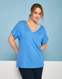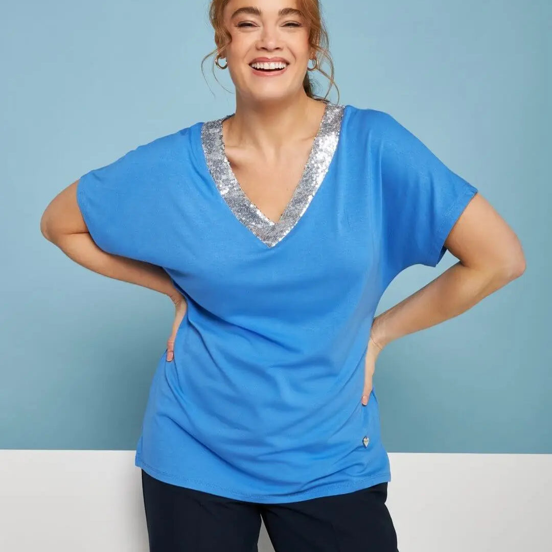 Camiseta kimono de jersey de viscosa elástica con cuello de pico y lentejuelas LAVANDA