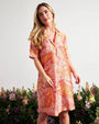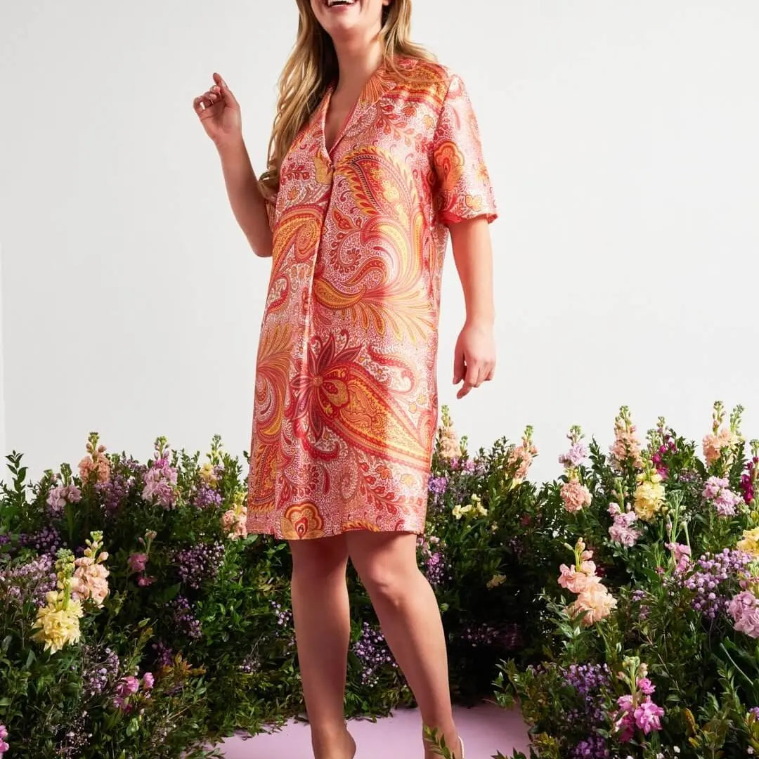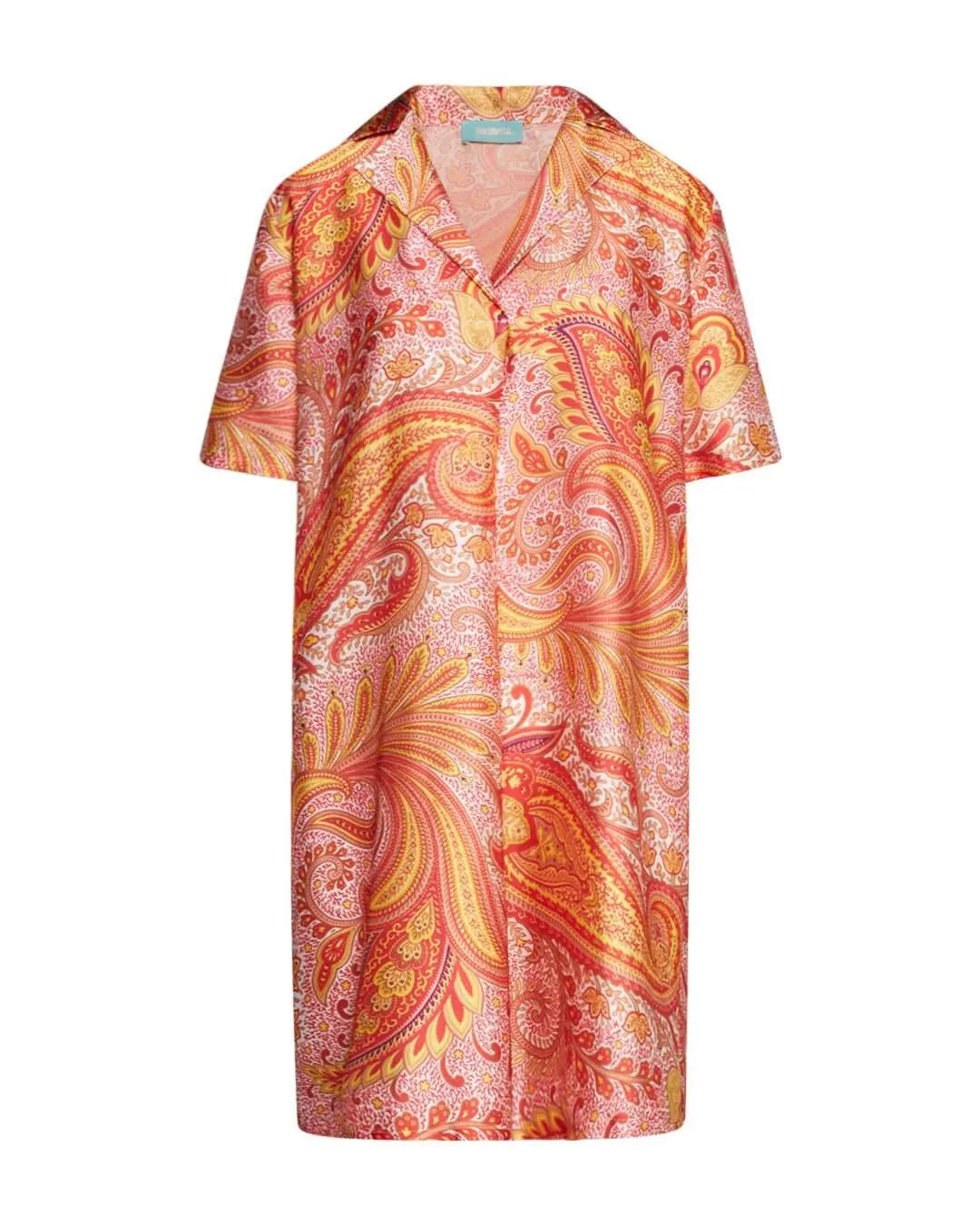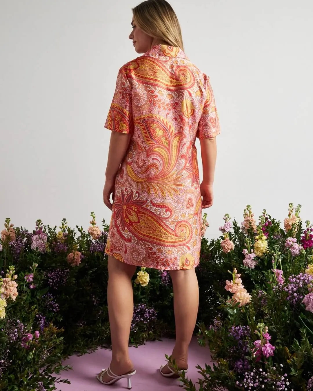 Vestido camisero de satén con estampado de cachemir y cuello solapa PAPAVERO