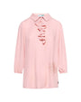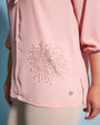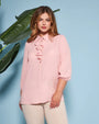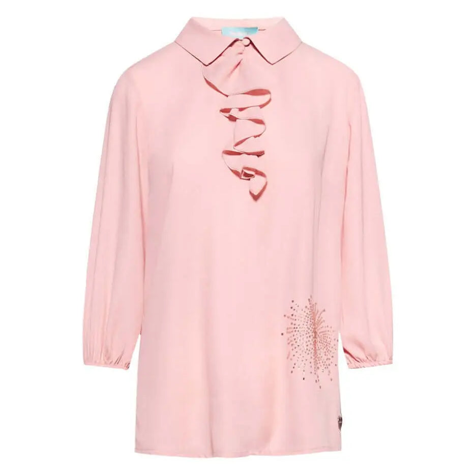 Blusa de georgette y jersey elástico con detalle de volante y pedrería POWDER