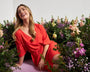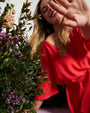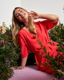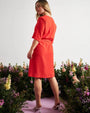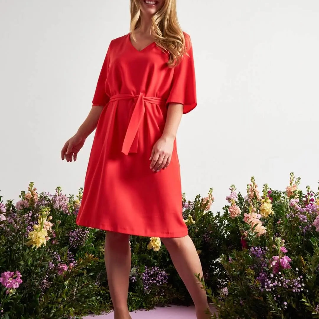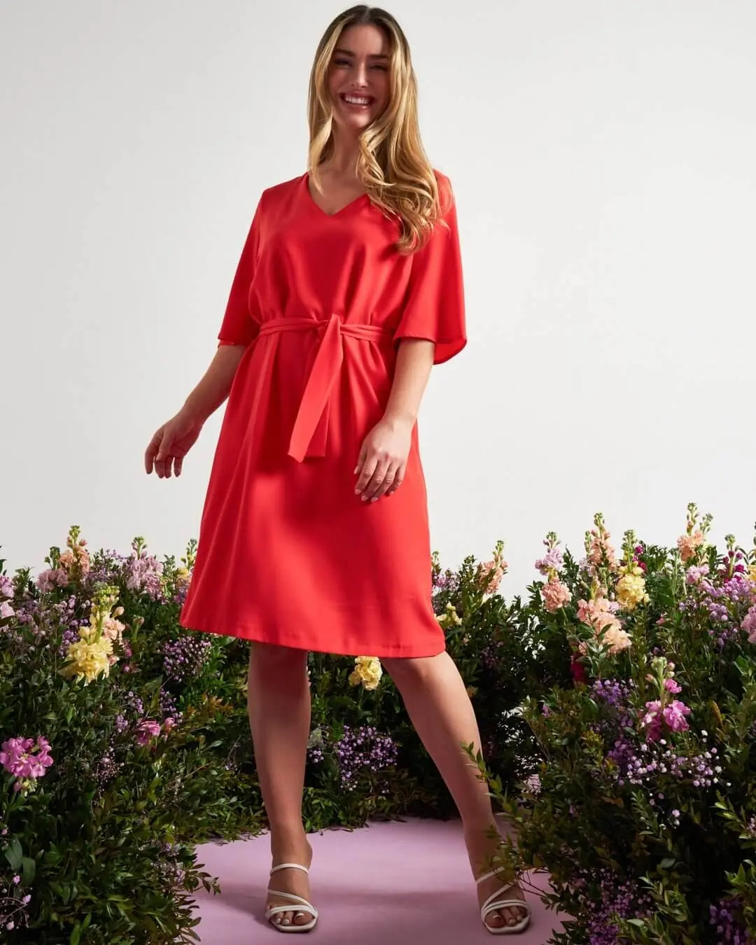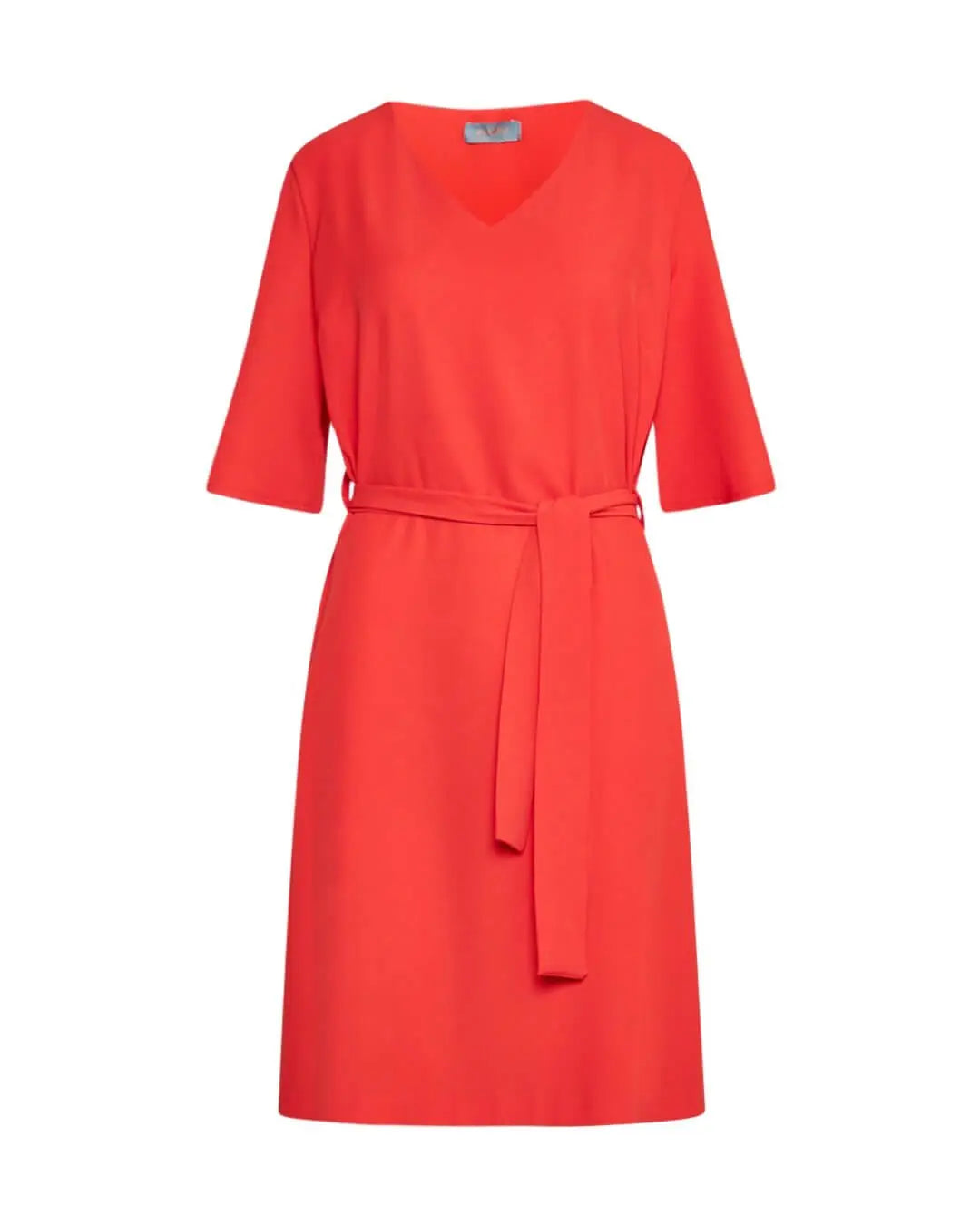 Vestido de manga corta de cady elástico con cinturón en la cintura PAPAVERO