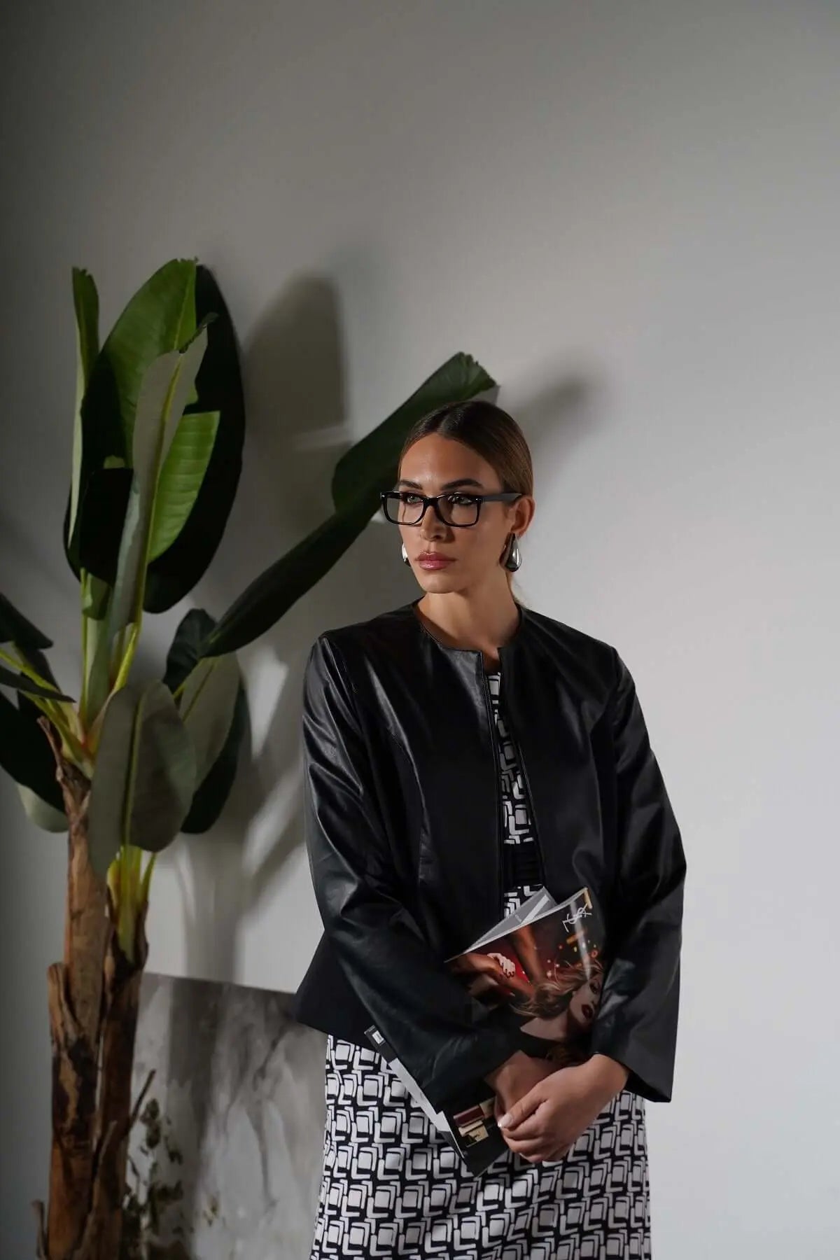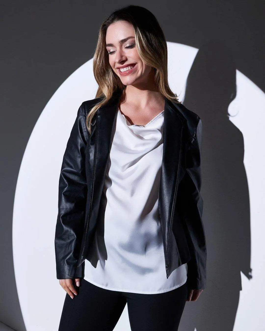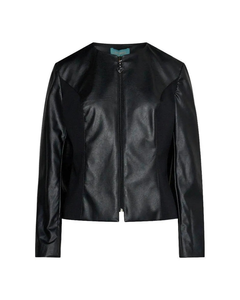 Chaqueta sin cuello de cuero ecológico NEGRO