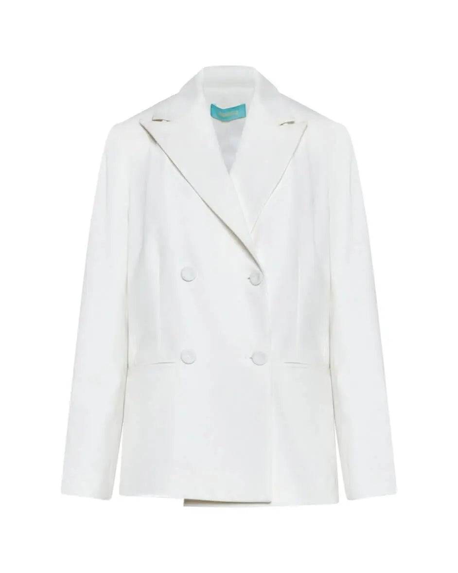Chaqueta cruzada de cady elástico con botones a juego BLANCO ROJO