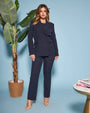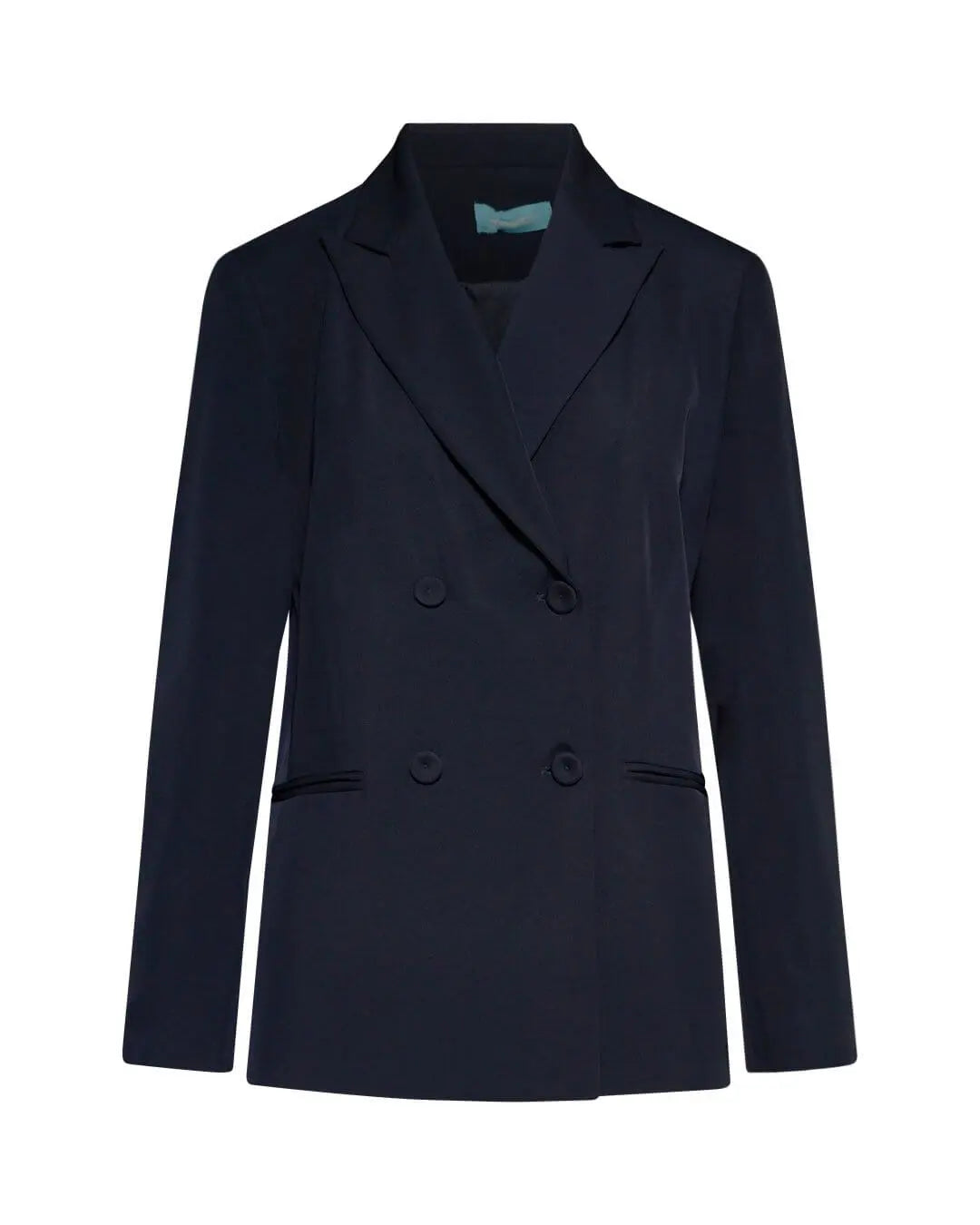 Chaqueta cruzada de cady elástico con botones en AZUL