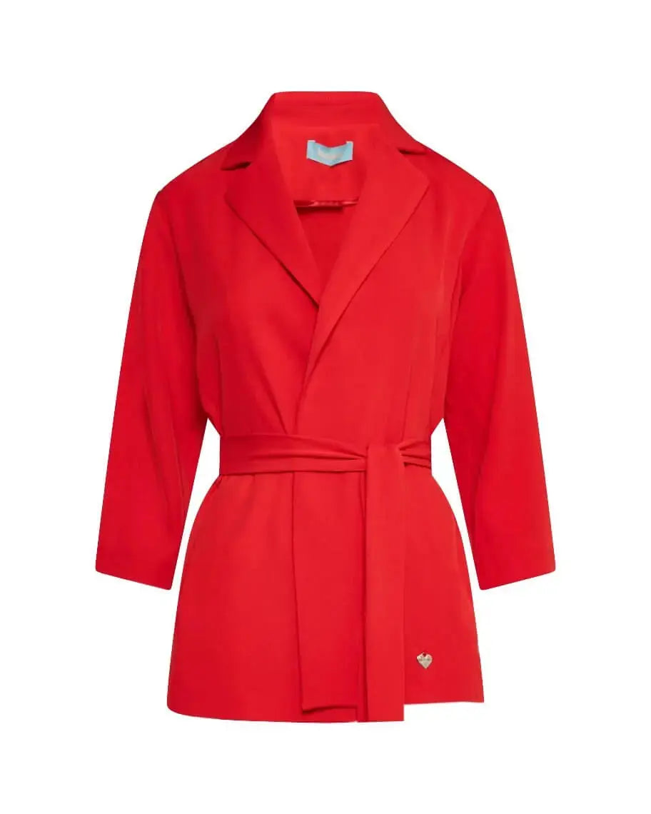 Chaqueta de abotonadura sencilla en cady elástico con cinturón en la cintura PAPAVERO