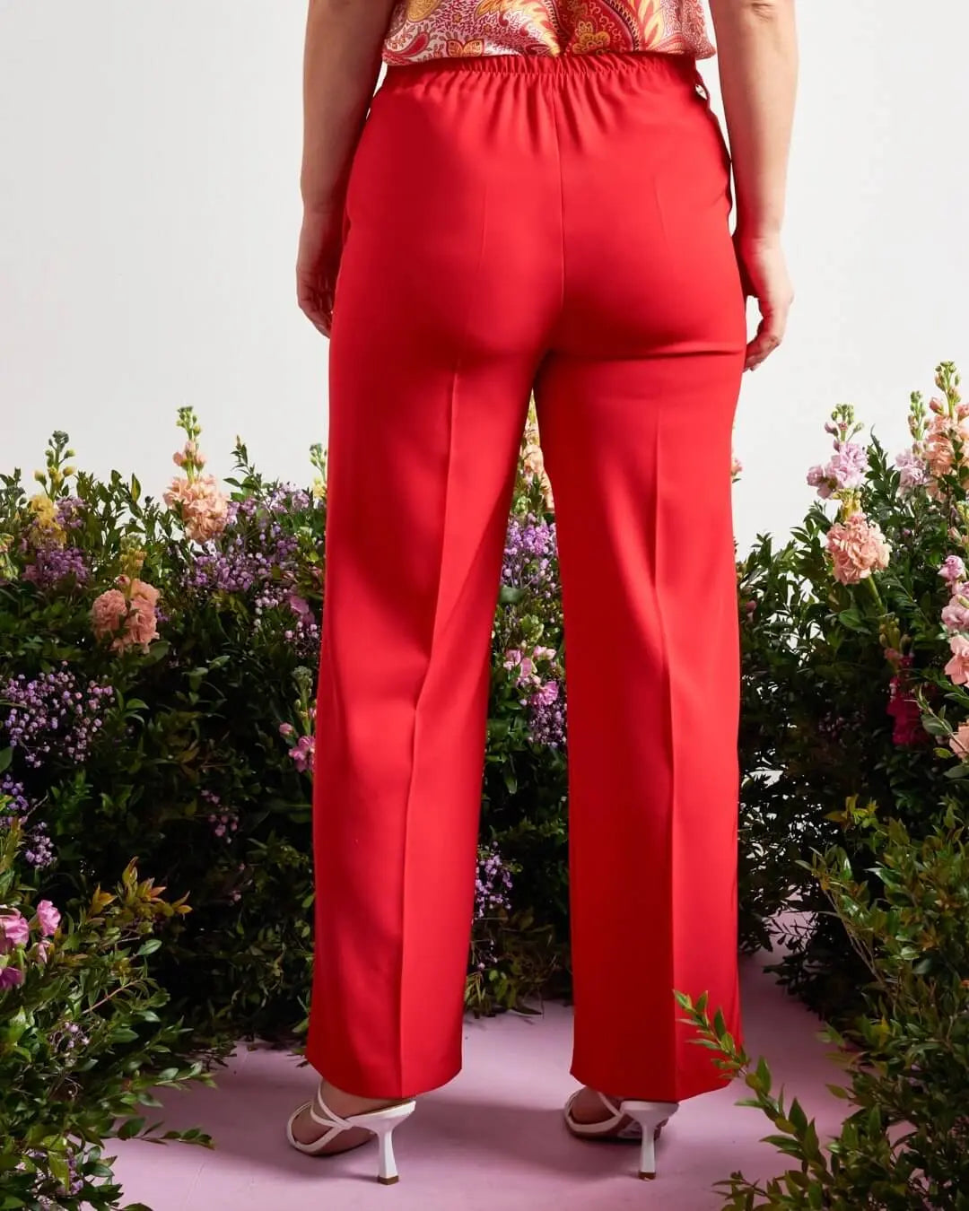 Pantalón recto de cady elástico de color liso. AMAPOLA