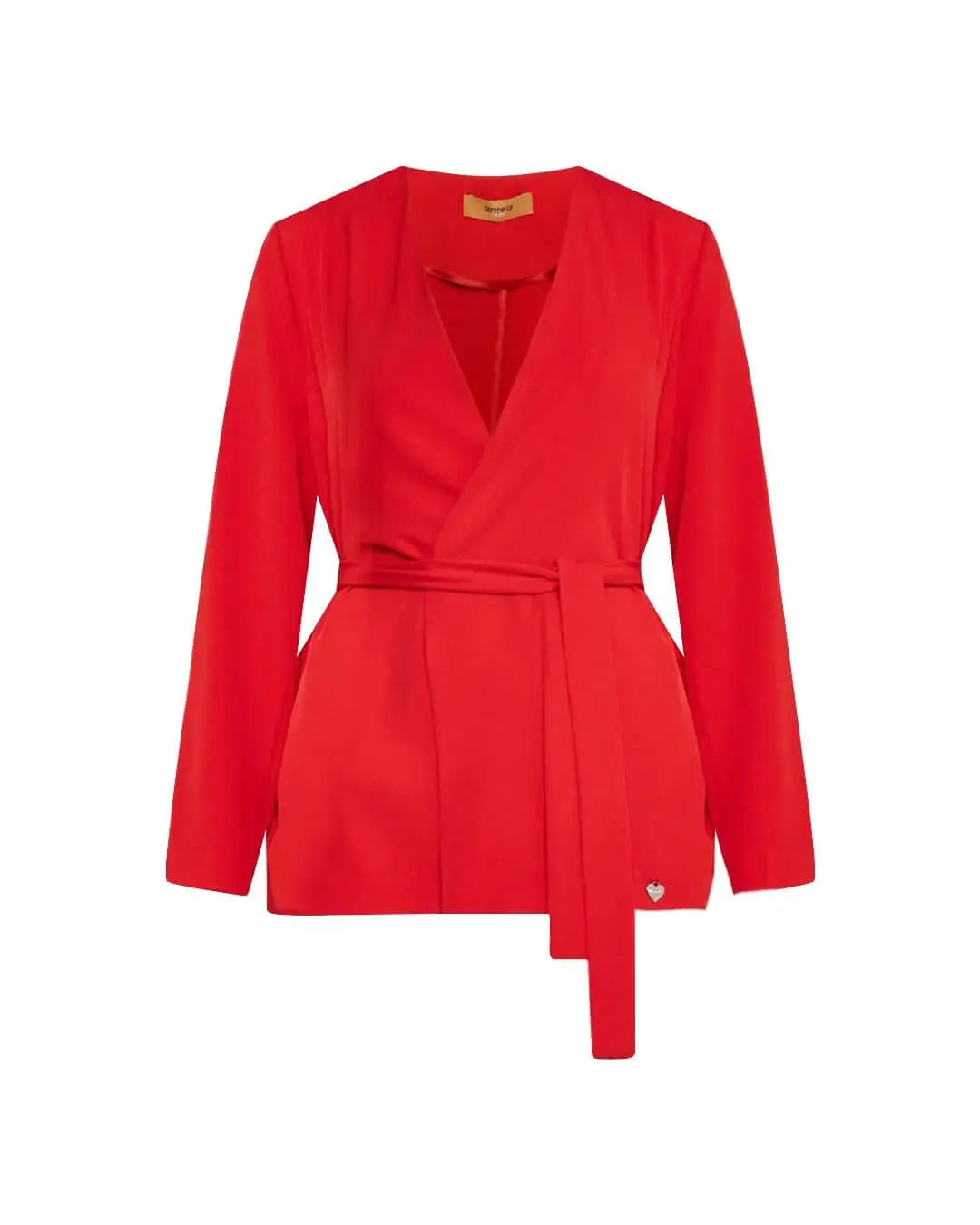 Chaqueta de abotonadura sencilla sin cuello en cady elástico con cinturón en la cintura PAPAVERO