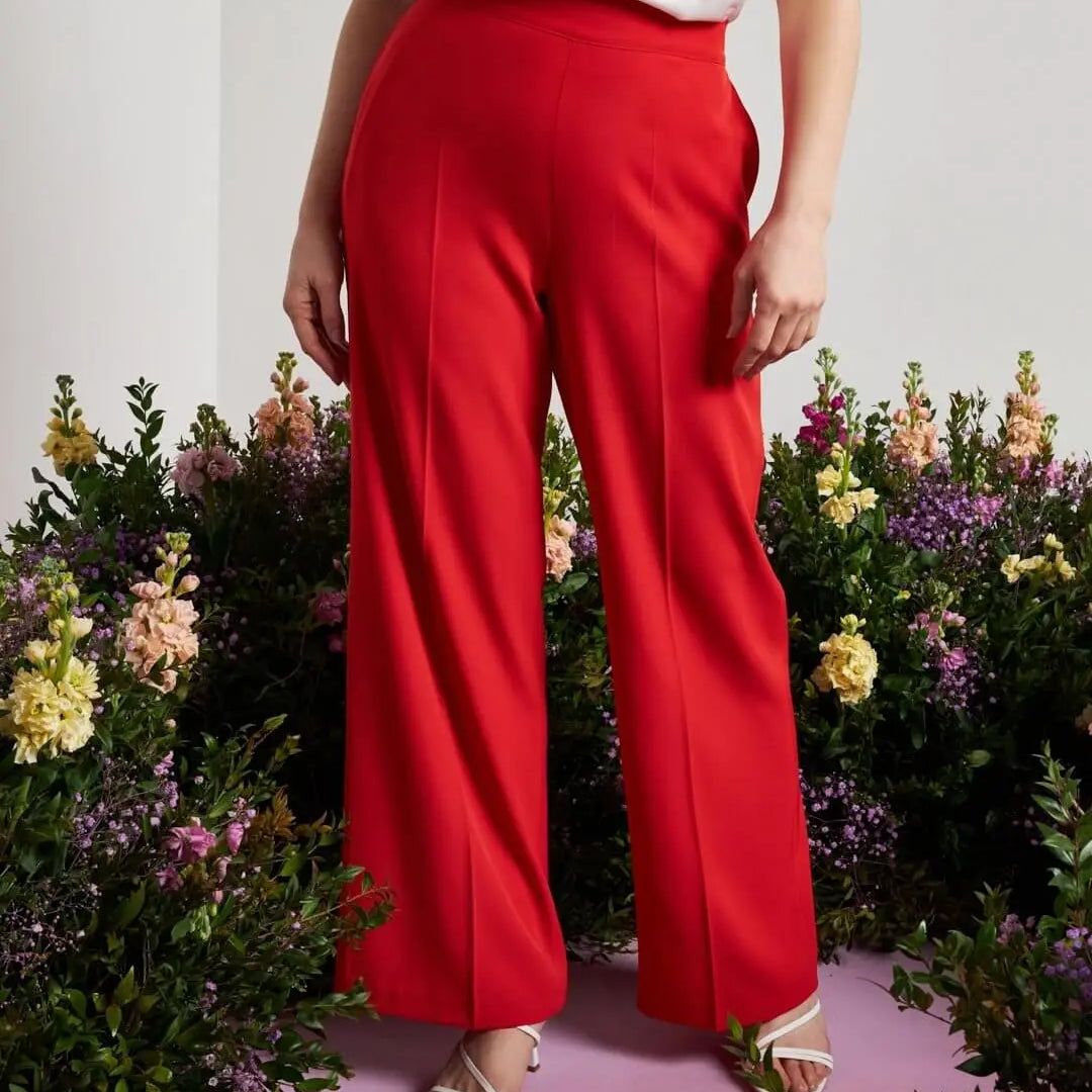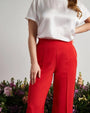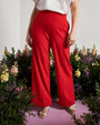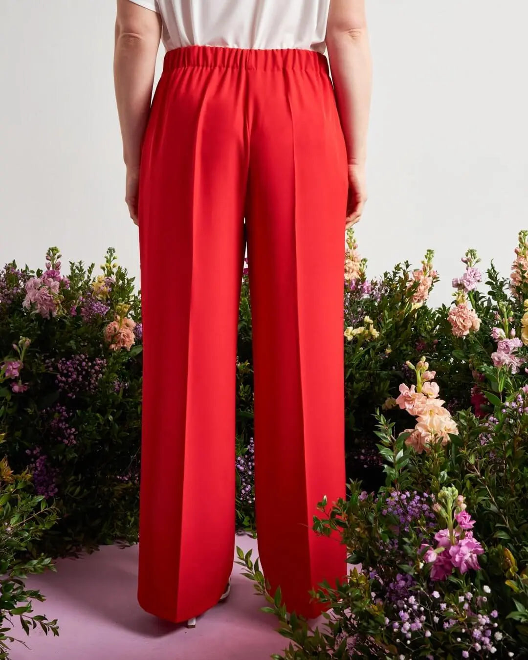 Pantalón ancho de cady elástico de color liso. AMAPOLA