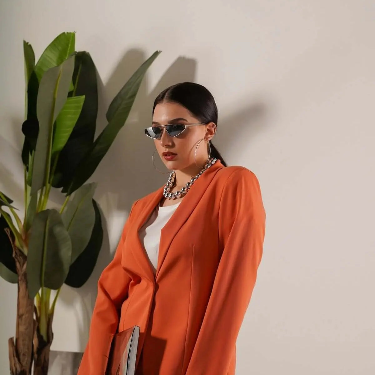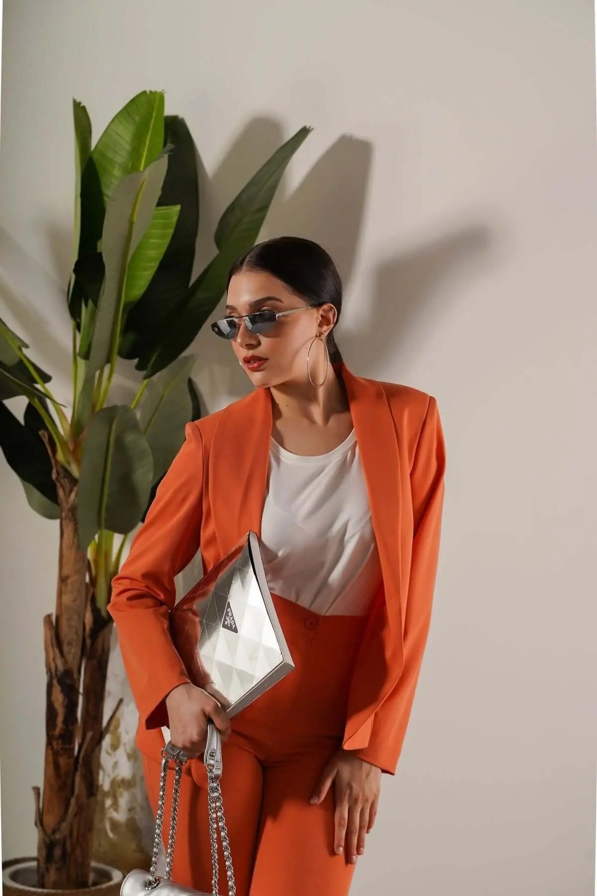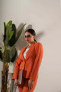 Blazer de manga larga y botonadura sencilla en cady elástico de color liso. SALMÓN