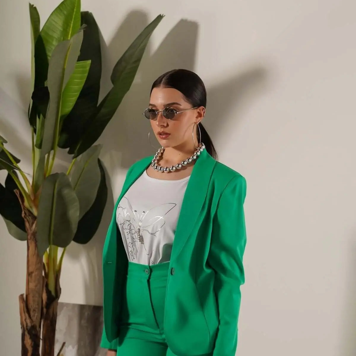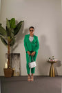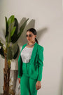 Blazer de manga larga y botonadura sencilla en cady elástico de color liso. BANDERA VERDE