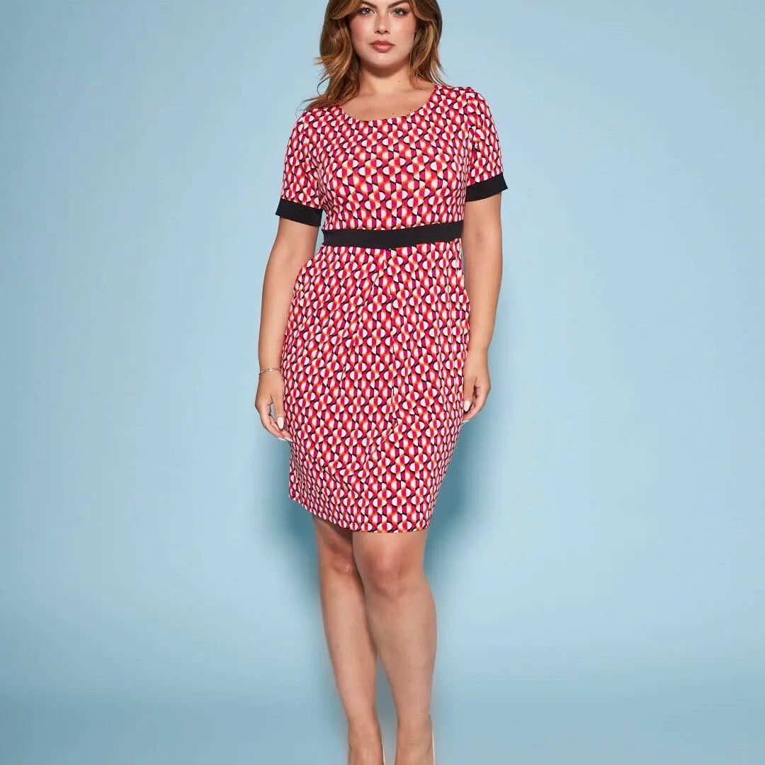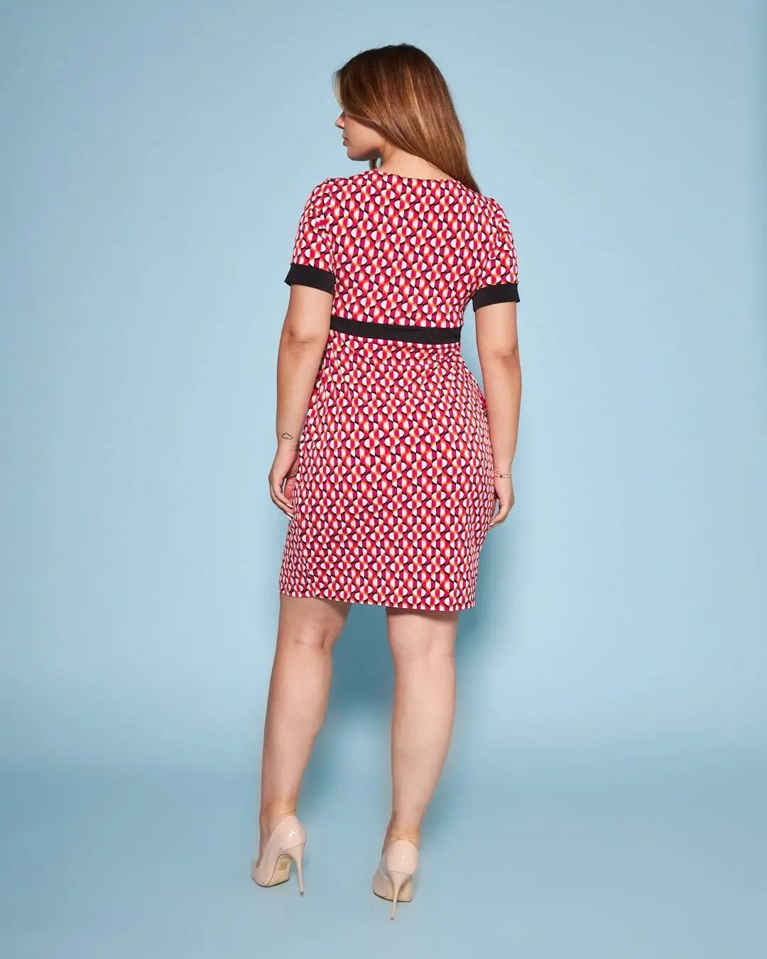 Vestido tubo con estampado óptico ROJO-NARANJA