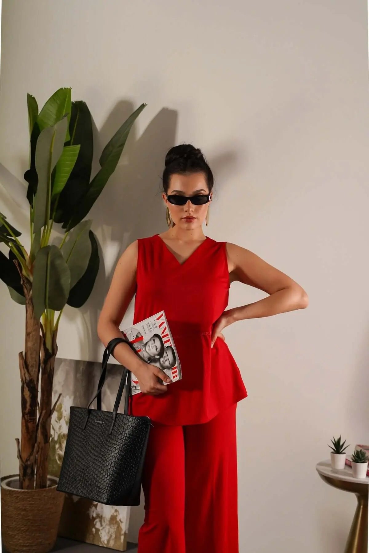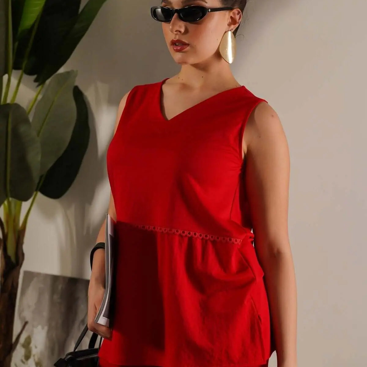 Camiseta de tirantes lisa con ribetes y escote en pico RED INDIA