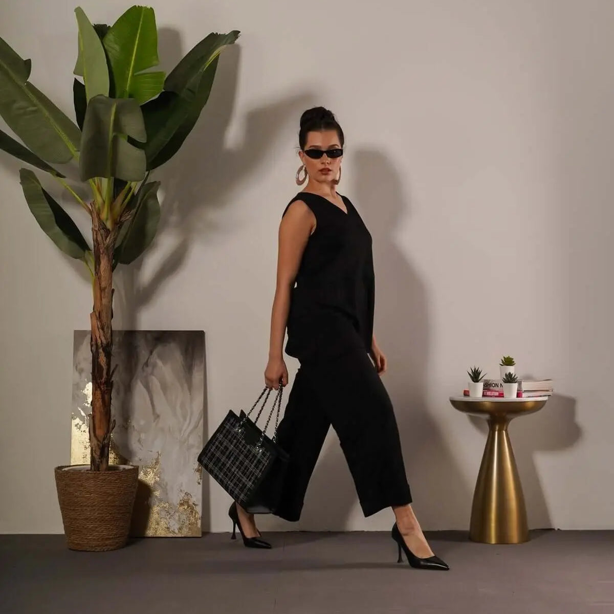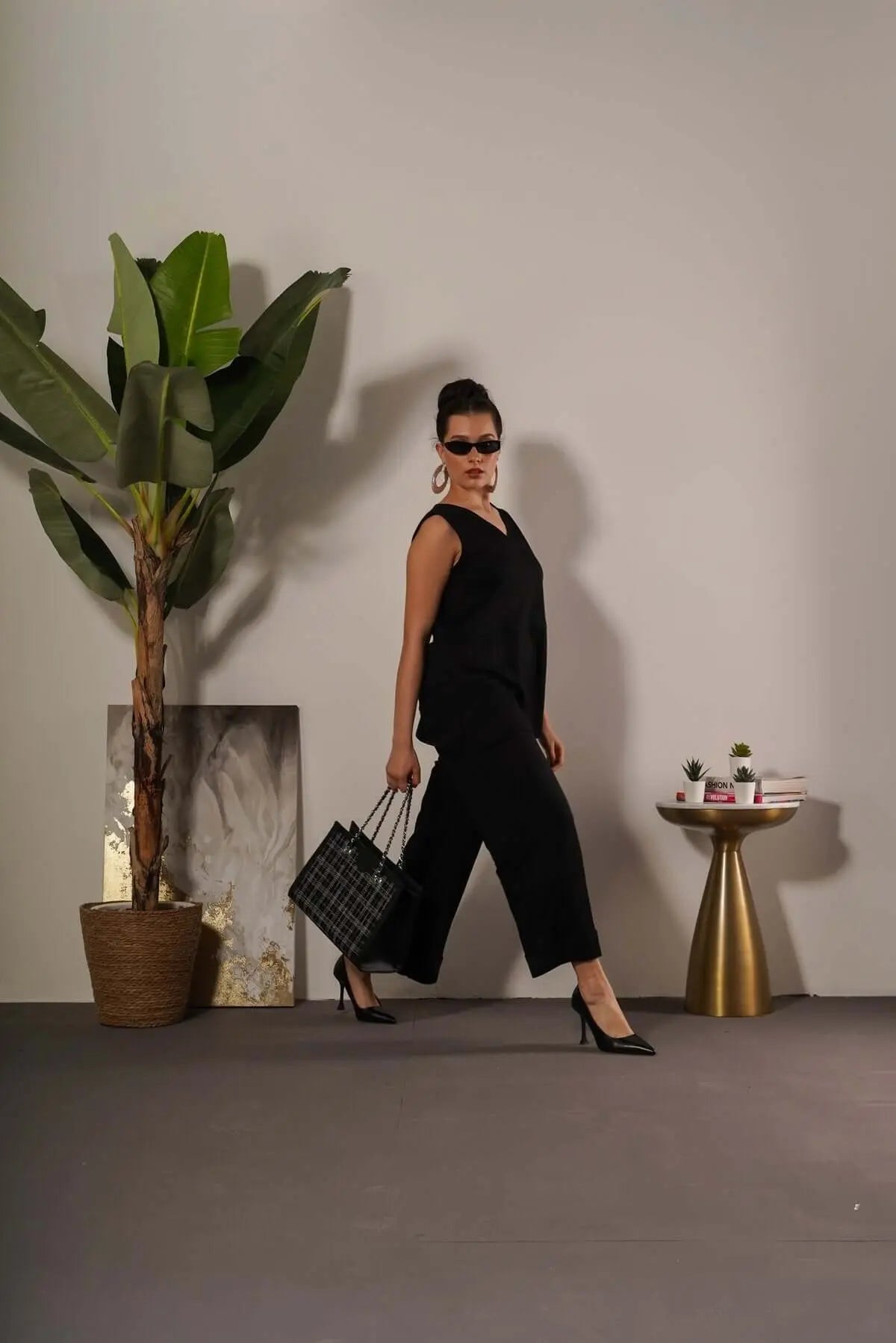 La modelo mide 1,75 m y usa talla M.