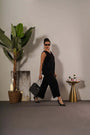 Pantalón de color liso con ribetes de mezcla de viscosa NEGRO