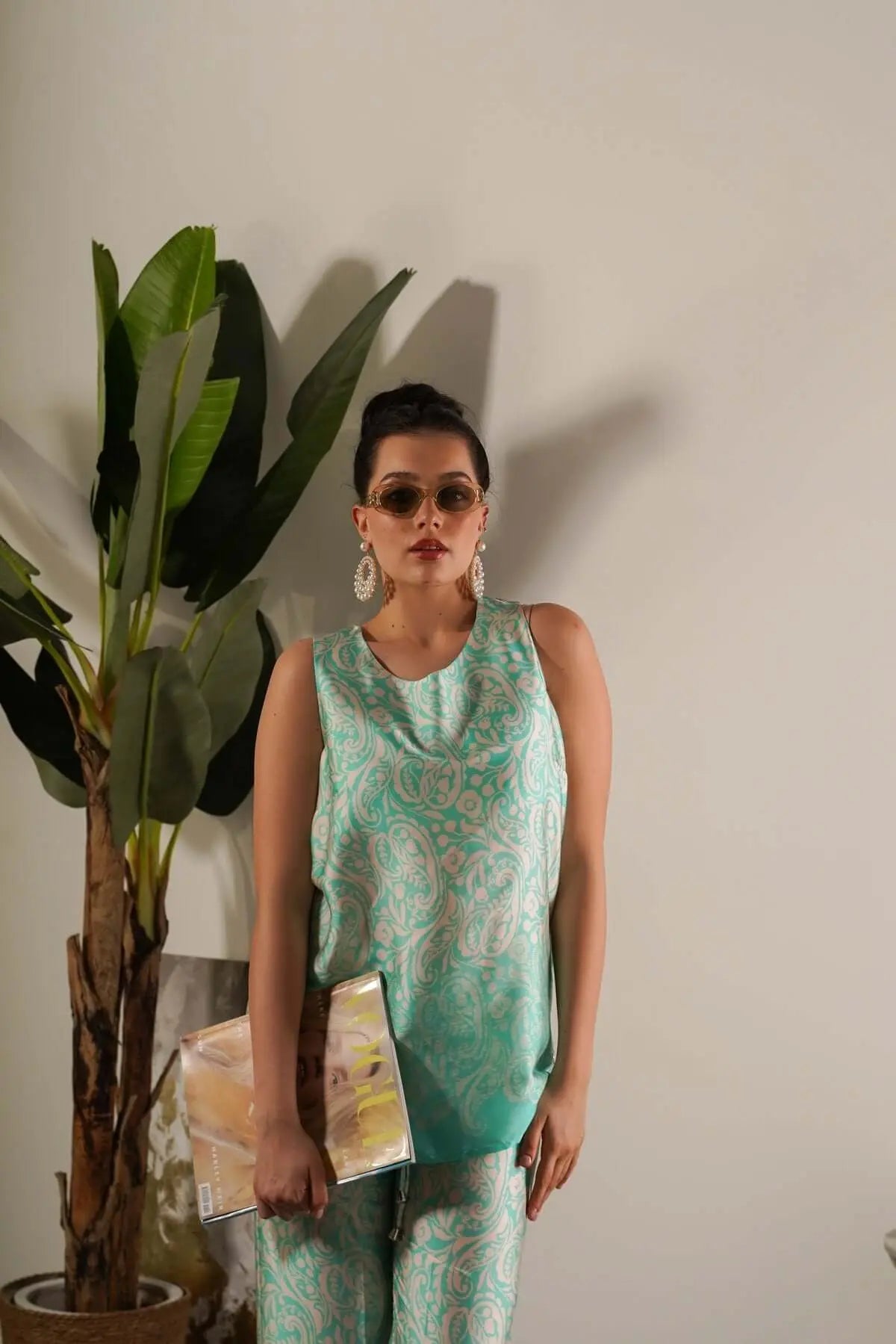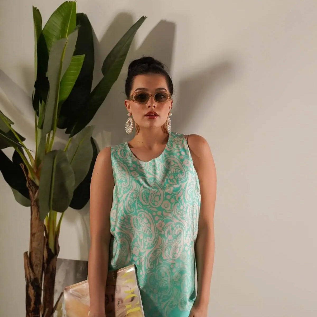 Top de tirantes de satén con estampado de cachemira MENTA