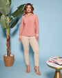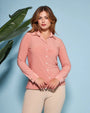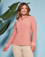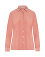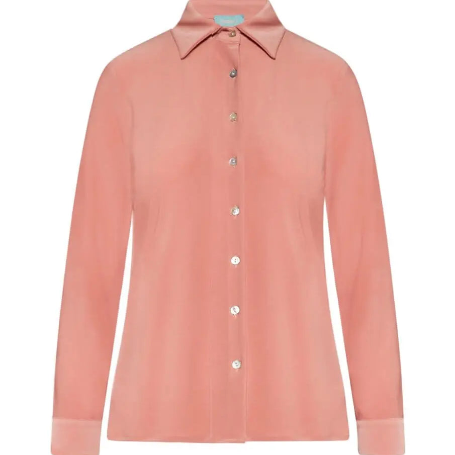 Camisa de jersey elástico de color liso con mangas tres cuartos. SALMÓN