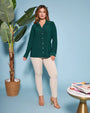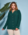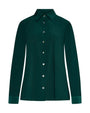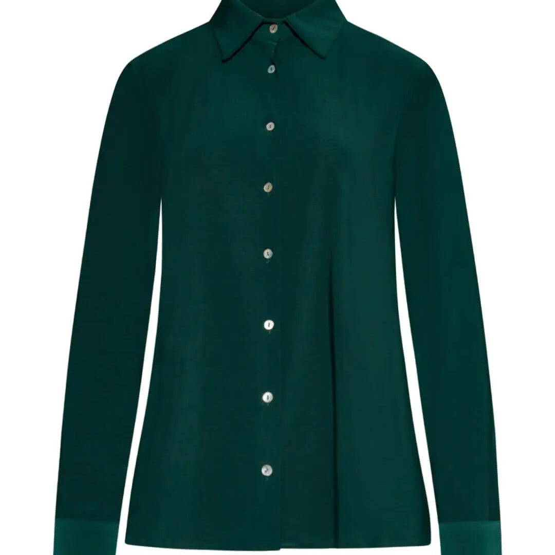 Camisa de jersey elástico de color liso con mangas tres cuartos. BOSQUE VERDE