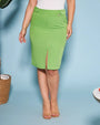 Falda de cady elástica de color liso con tirantes en la cintura. ÁCIDO VERDE
