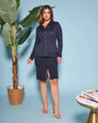 La modelo mide 1,75 m y usa talla 42.