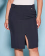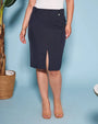 Falda de cady elástica de color liso con tirantes en la cintura. AZUL