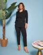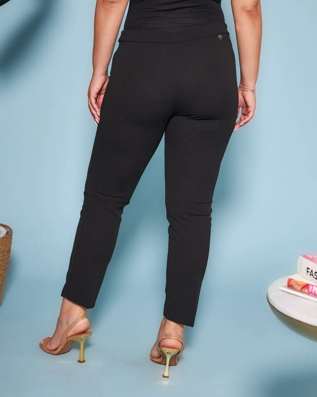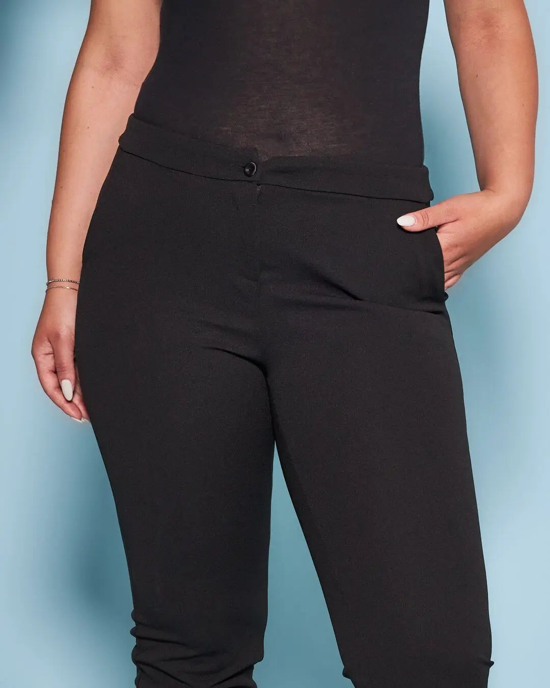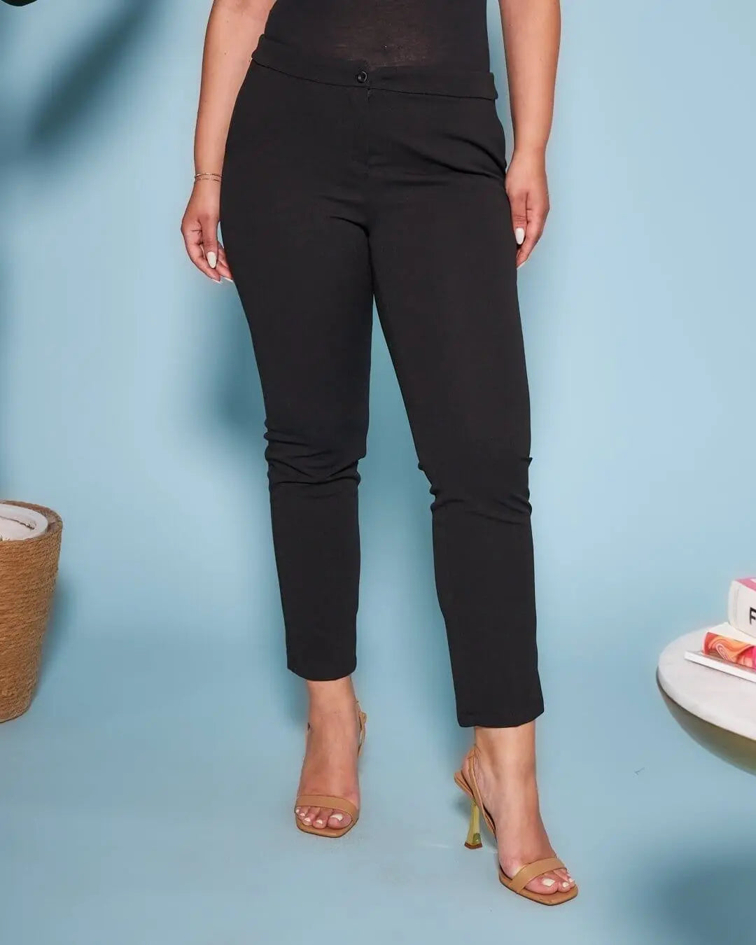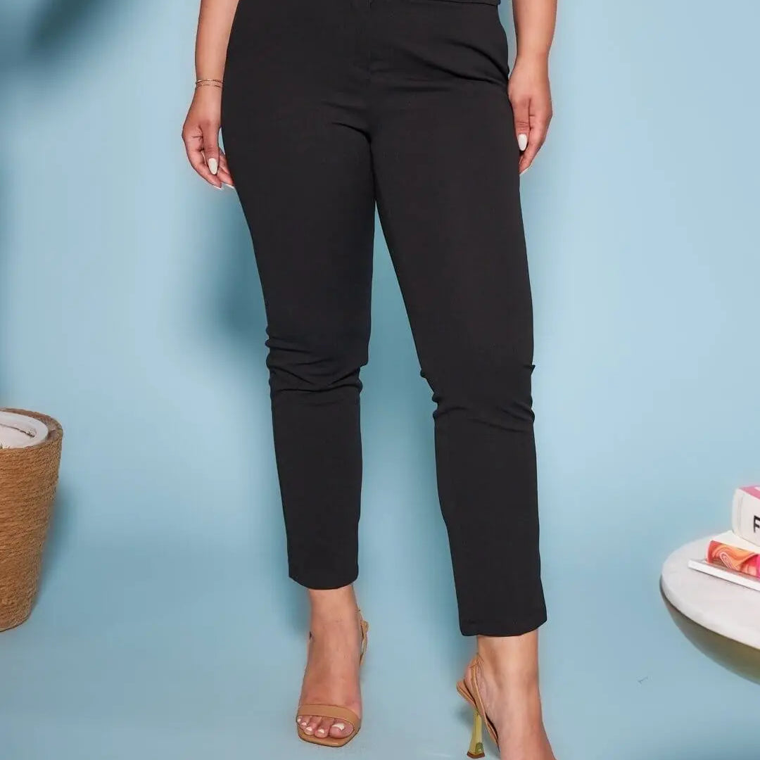 Pantalón pitillo en cady elástico de color liso. NEGRO